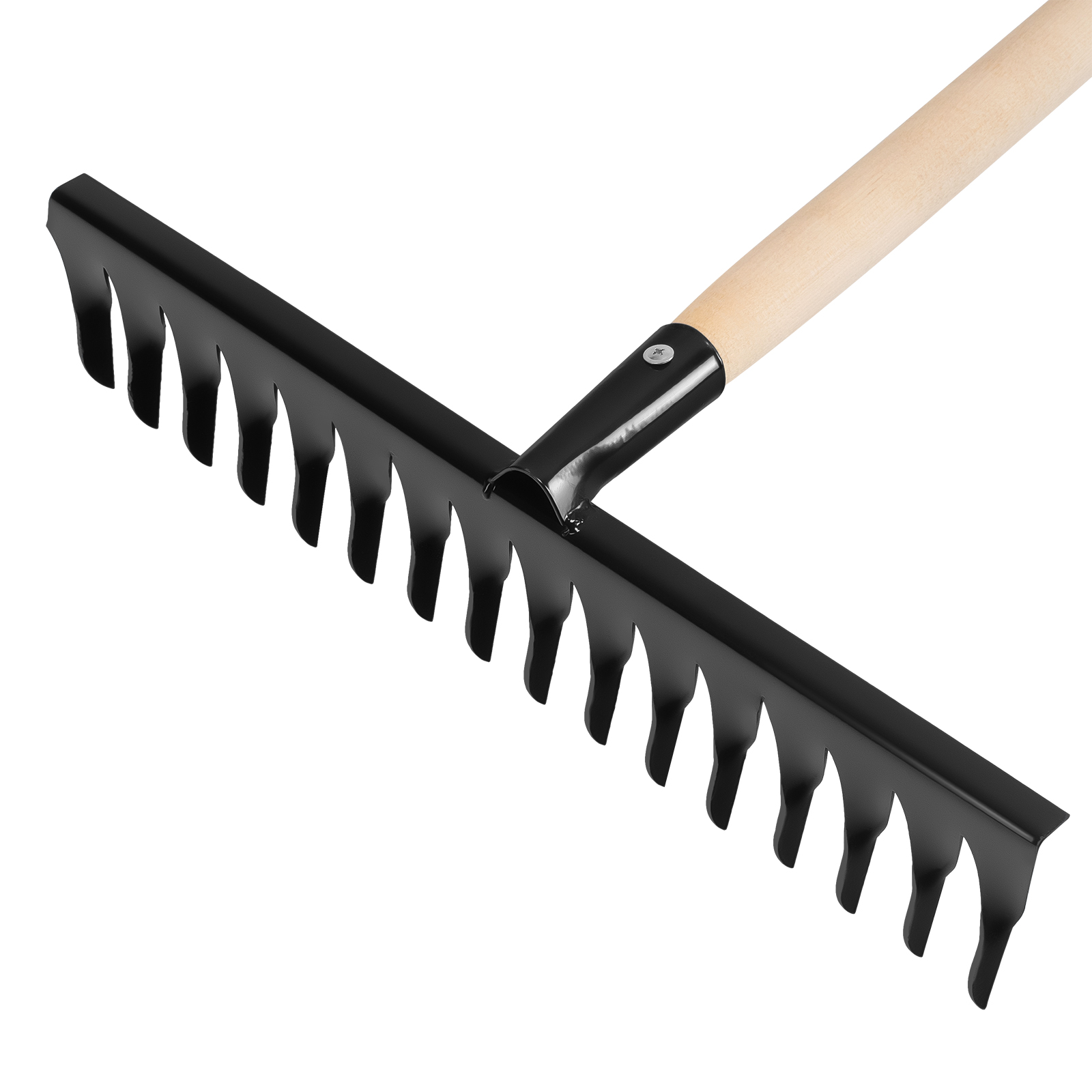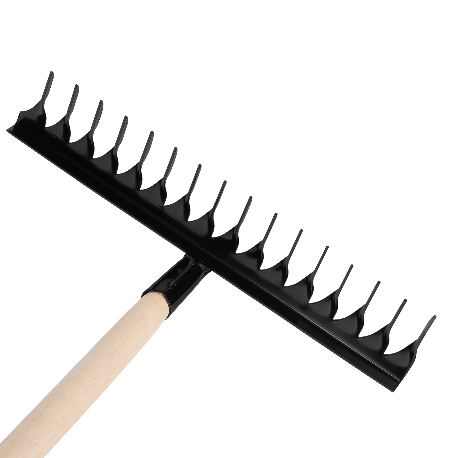 Стальные грабли Сибртех 61763 длиной 1300 мм, с 16 витыми зубьями и шириной гребенки 420 мм, служат для уборки с газонов и грядок листвы и мусора, а также позволяют проводить аэрацию почвы. Поставляются в сборе с деревянным черенком и полностью готовы к эксплуатации.