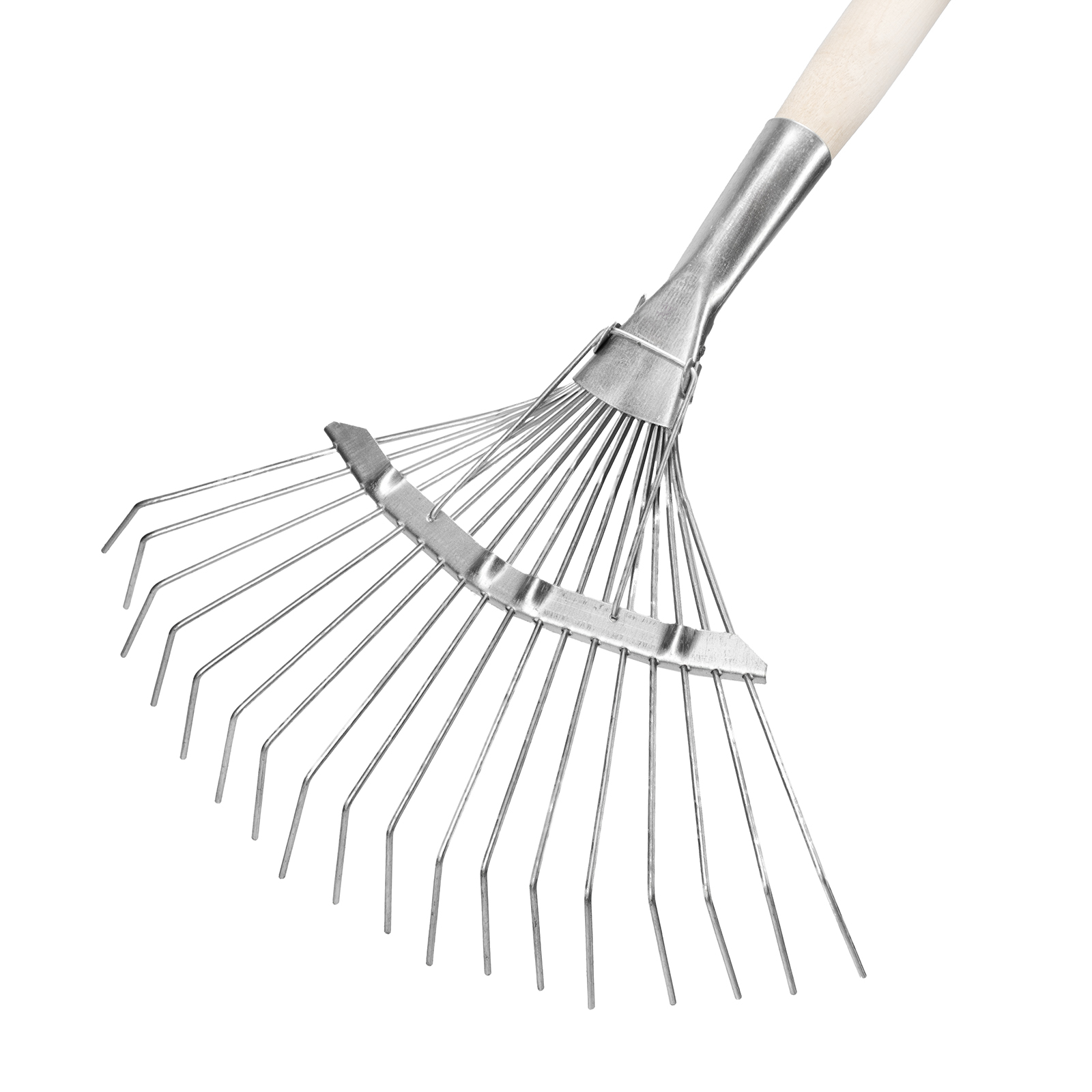 - Надежная конструкция — распорка на рабочей части повышает устойчивость грабель к нагрузкам.