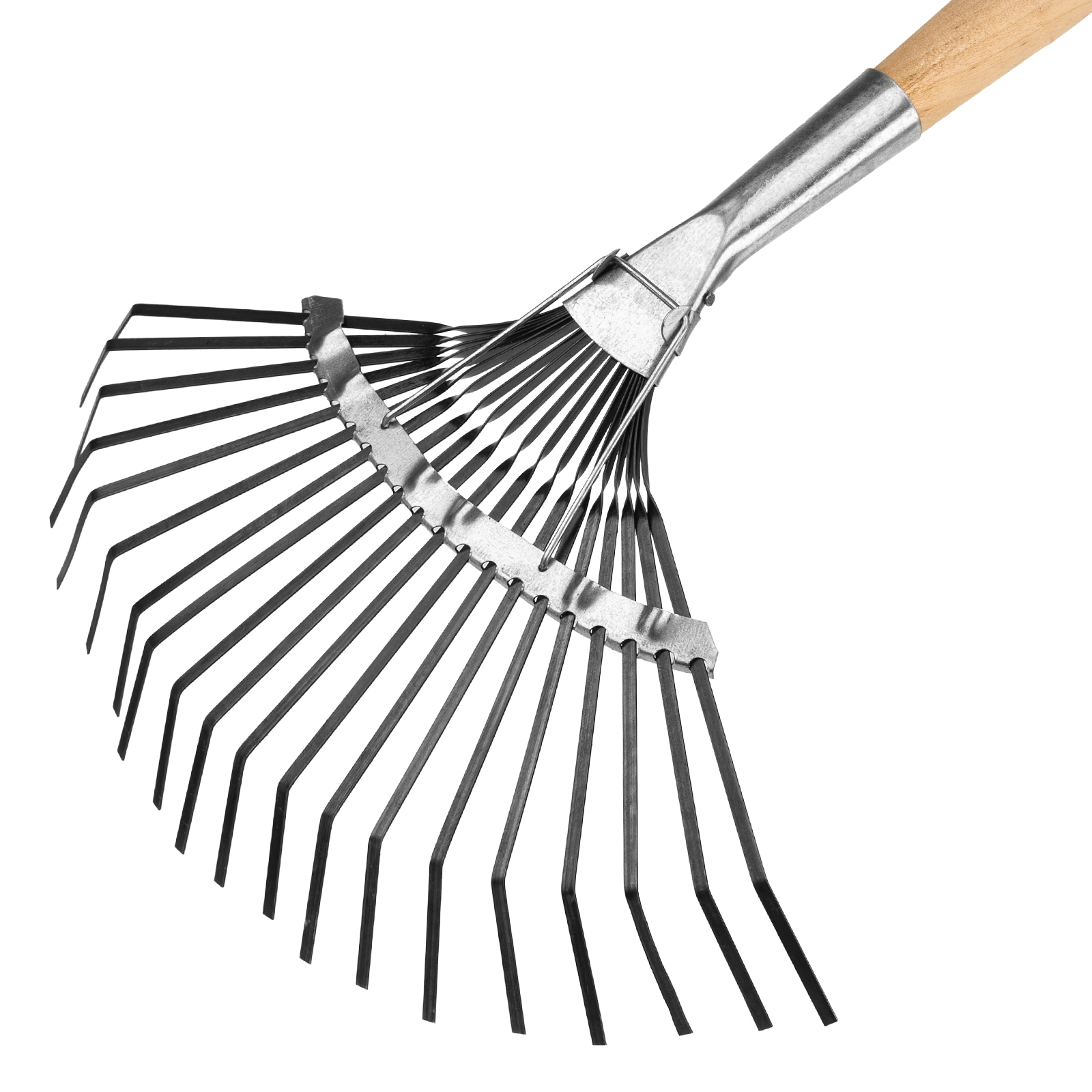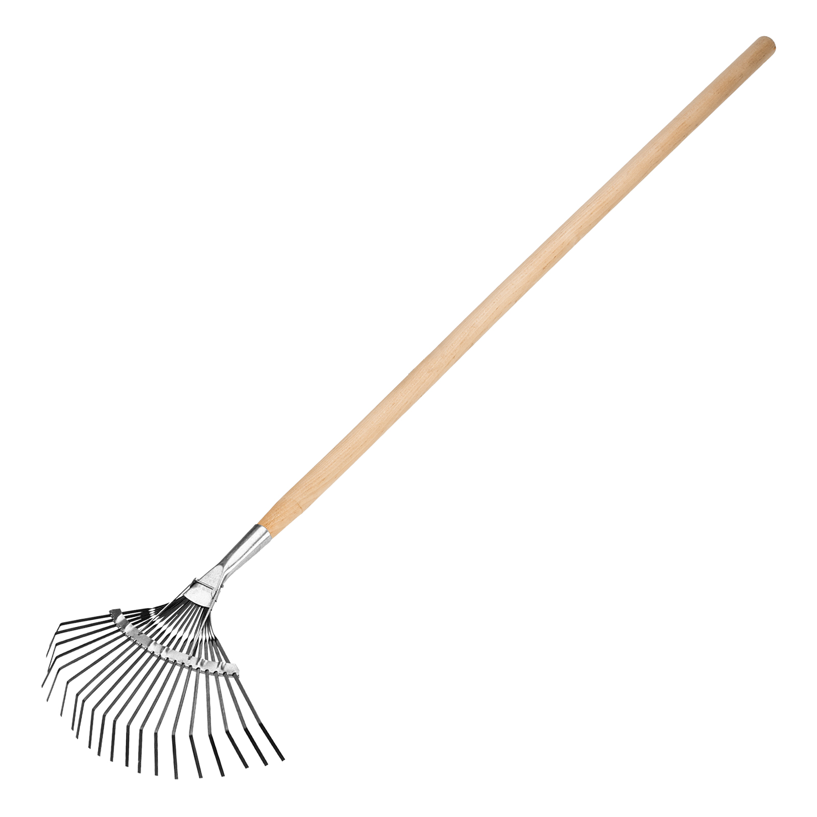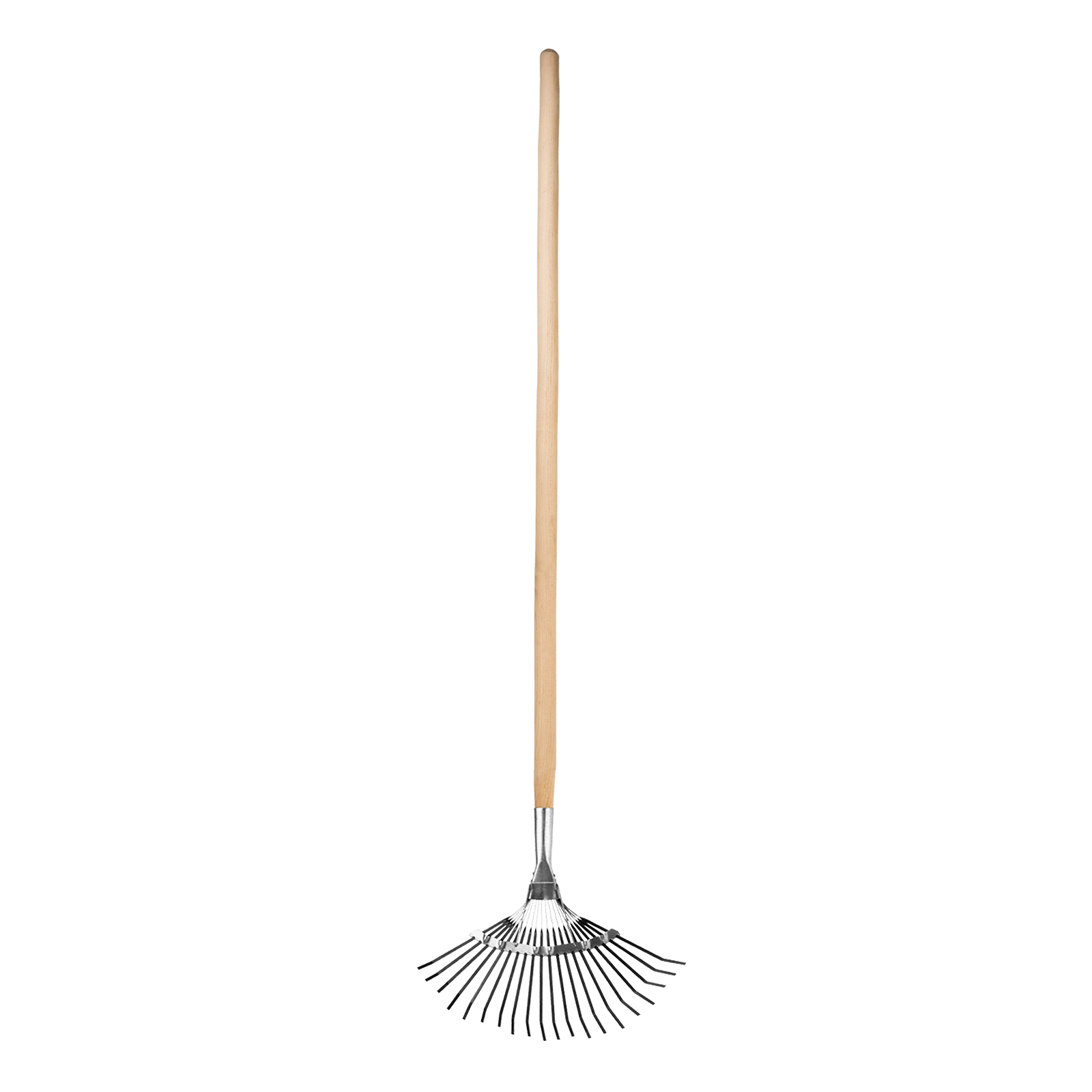 Веерные стальные грабли Сибртех 61779 размером 385 х 1500 мм, с 20 плоскими зубьями и деревянным черенком, предназначены для работы на садовом участке. Позволяют убирать мусор, листву и ветки с лужаек и грядок. Грабли поставляются в сборе с черенком и полностью готовы к эксплуатации.
