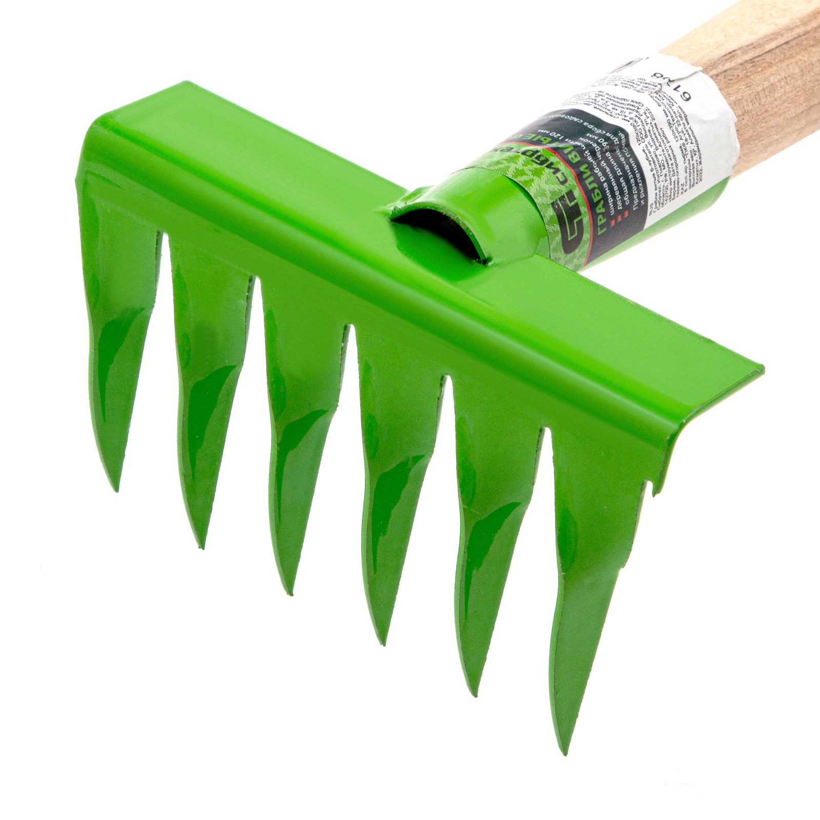 - Прочность и долговечность — рабочая часть с тулейкой выполнены из конструкционной углеродистой стали, грабли отличаются хорошей сопротивляемостью нагрузкам.