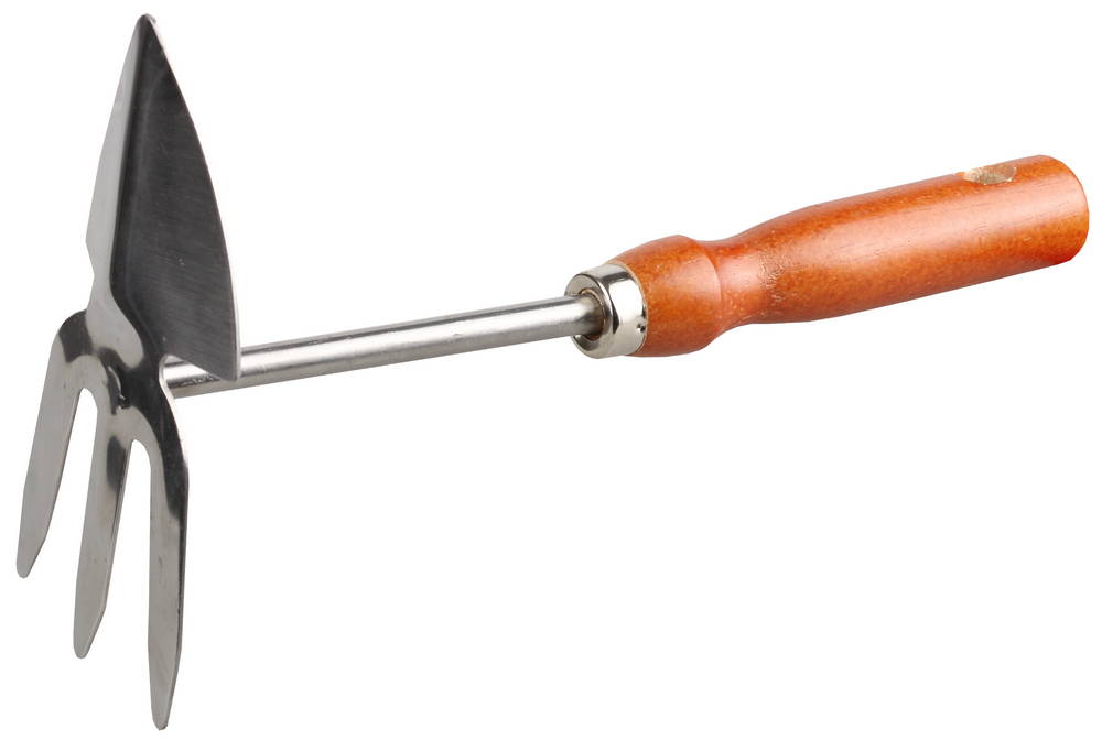 Применяется для прополки растений и рыхления почвы. Зубцы служат для разбивки комьев и разравнивания грунта. Сердцевидное лезвие помогает разрыхлить сильно утрамбованную почву.