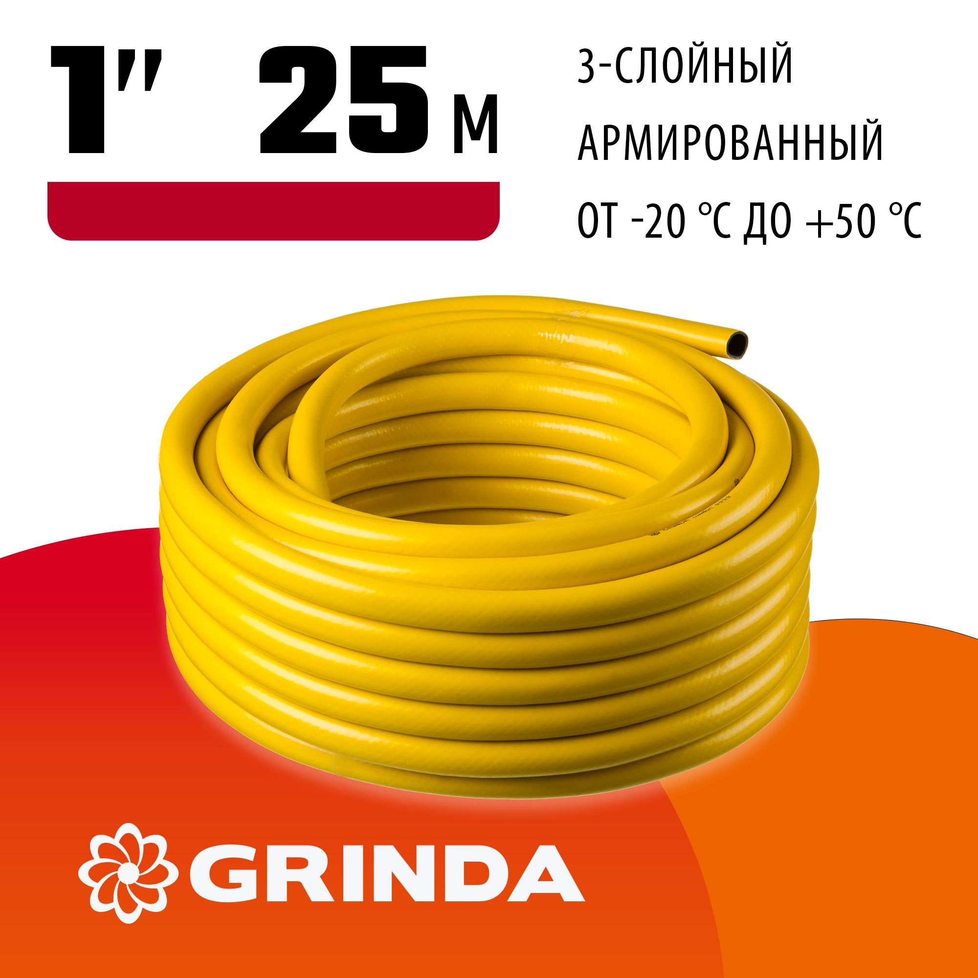 GRINDA Comfort, 1″, 25 м, 20 атм, трёхслойный, армированный, поливочный шланг (8-429003-1-25)