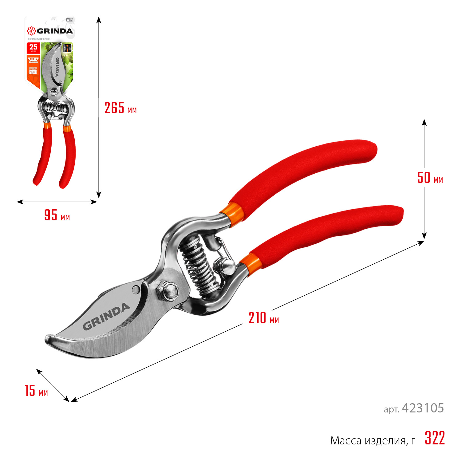 Все секаторы GRINDA являются прочными, долговечными и удобными изделиями, обеспечивая комфортный и лёгкий рез. Они выполнены из высококачественных материалов гарантирующих долгий срок эксплуатации.