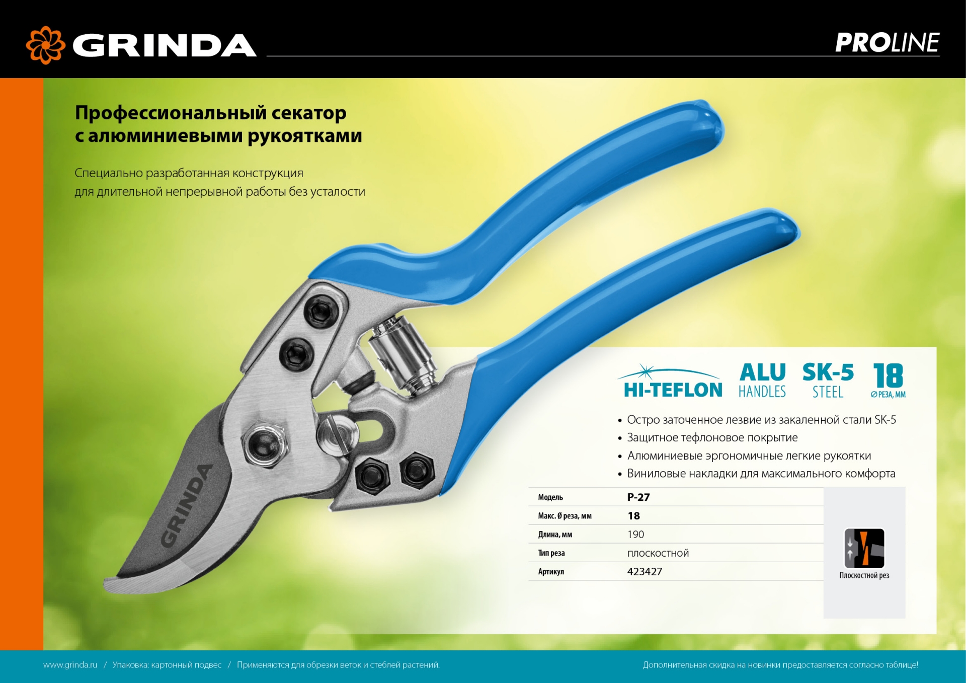 Профессиональные секаторы GRINDA PRO-LINE характеризуются самыми надёжными и современными материалами. Пользуясь этими секаторами вы обеспечите себе удовольствие и комфорт при работах в саду.
