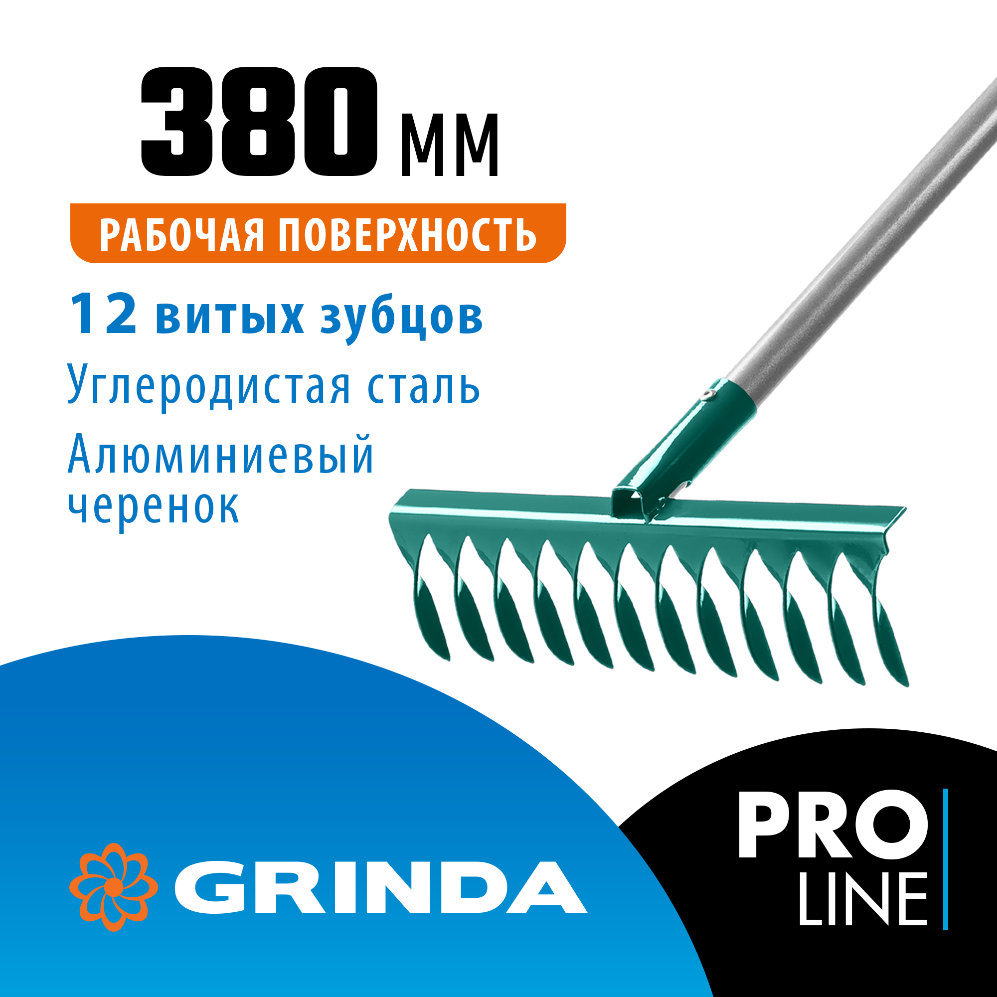 Садовые грабли Grinda с алюминиевым черенком максимально лёгкие и удобные