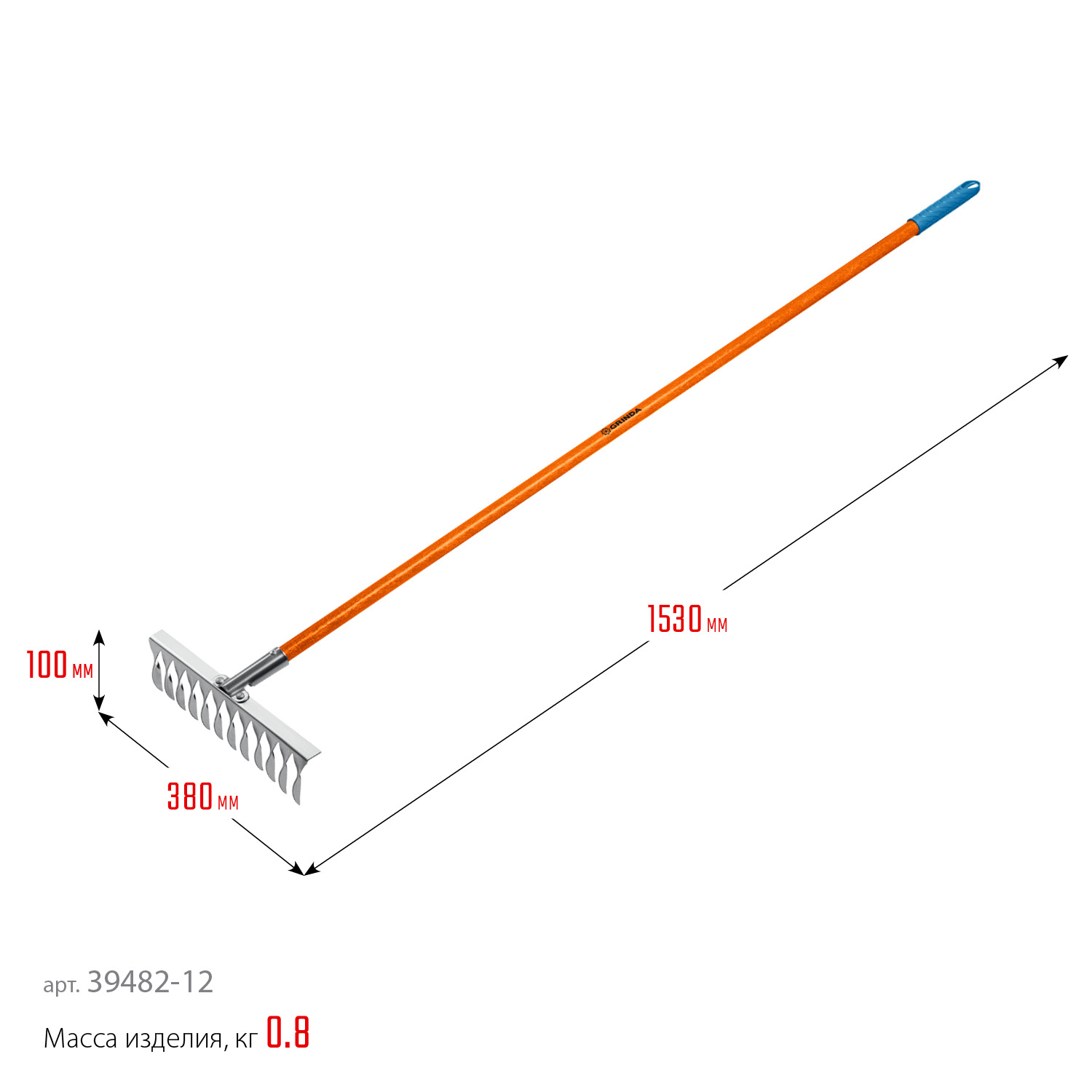 - Черенок из фибергласса обладает высокой прочностью и лёгким весом, не выскальзывает из рук.
