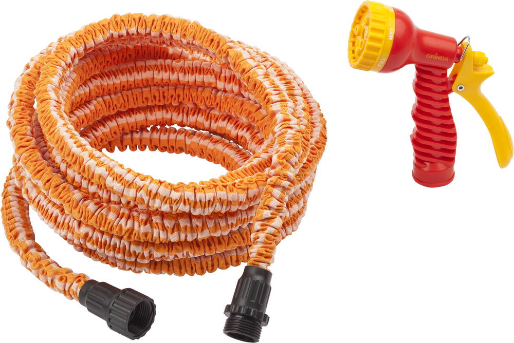 GRINDA PS-22, удлиняющийся шланг 7.5 - 22.5 м, пистолет поливочный, коннекторы, поливочный набор (428496-22)