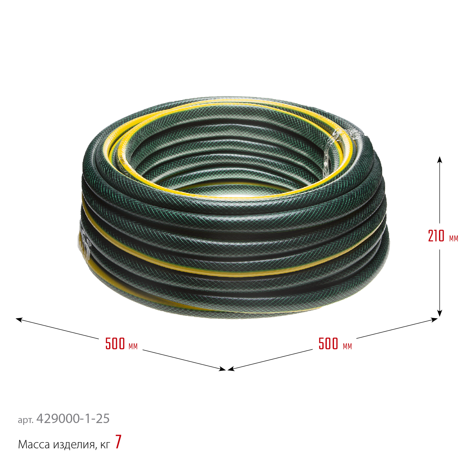 GRINDA STANDARD, 1″, 25 м, 10 атм, трёхслойный, армированный, поливочный шланг (429000-1-25)