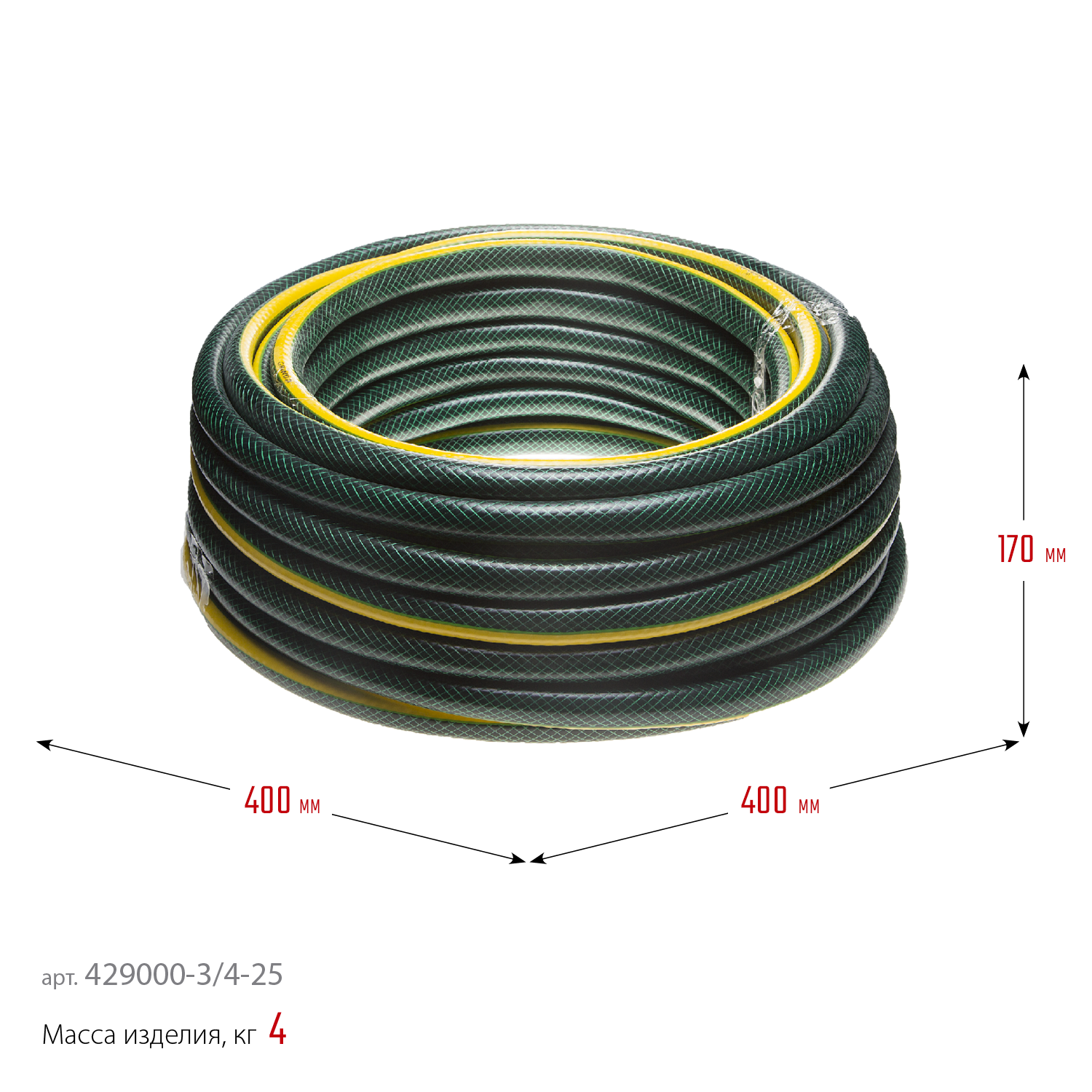 GRINDA STANDARD, 3/4″, 25 м, 15 атм, трёхслойный, армированный, поливочный шланг (429000-3/4-25)