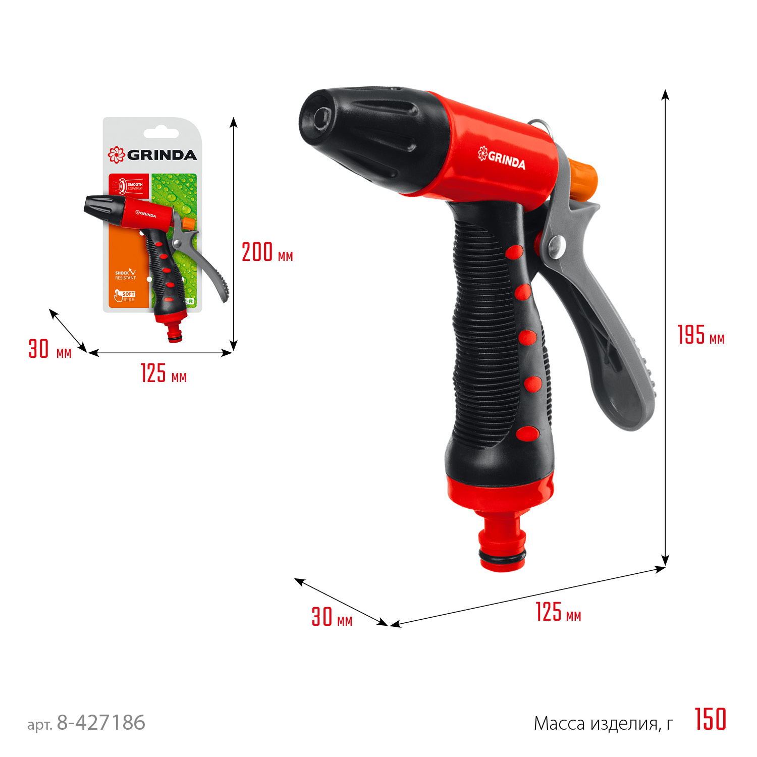 Поливочные пистолеты-распылители GRINDA удобны, надёжны и долговечны. Обеспечивают простое и качественное подключение к поливочной системе. Широкий модельный ряд с самыми современными и эффективными режимами полива.