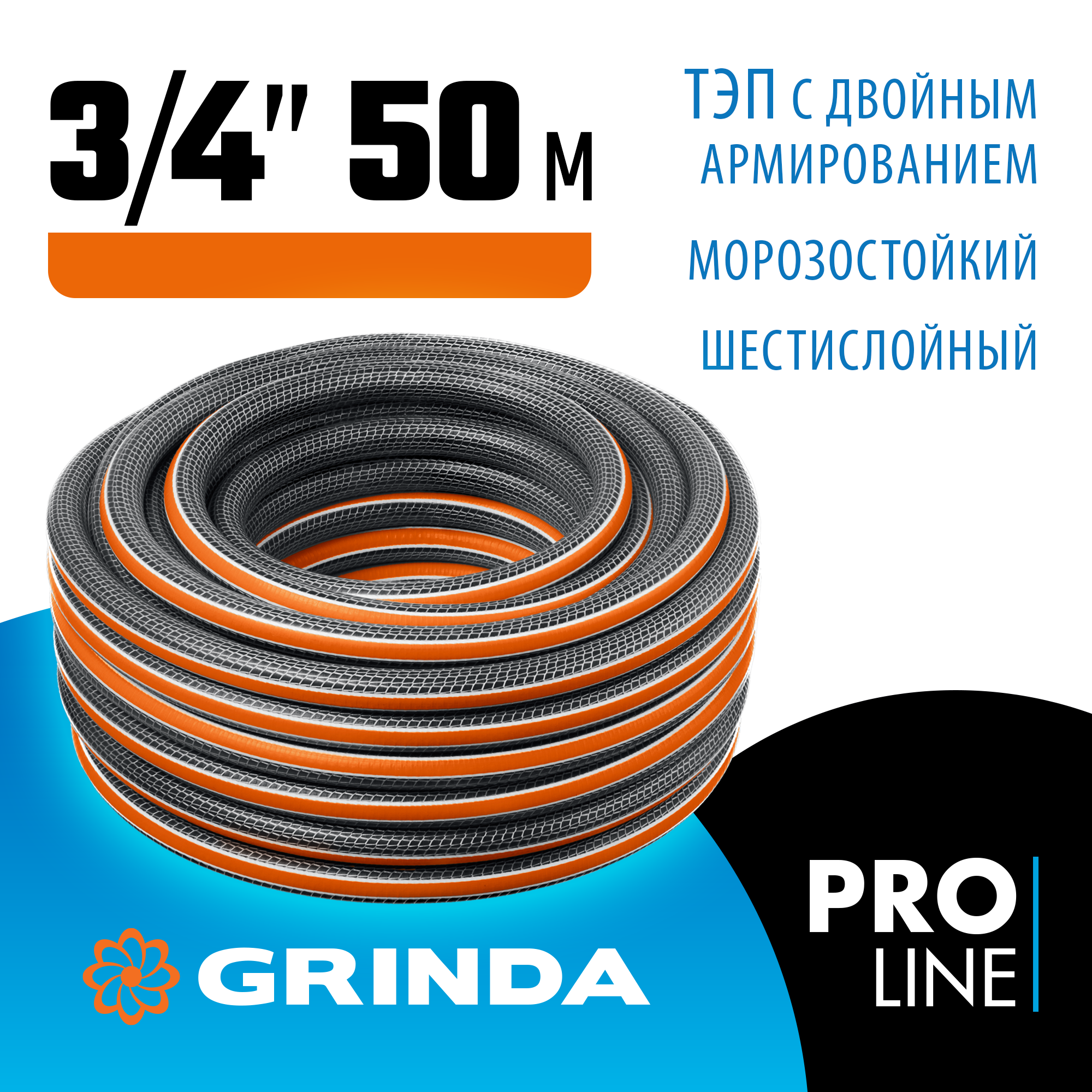 GRINDA ULTRA 6, 3/4″, 50 м, 25 атм, шестислойный, двойное армирование, поливочный шланг, PROLine (429009-3/4-50)