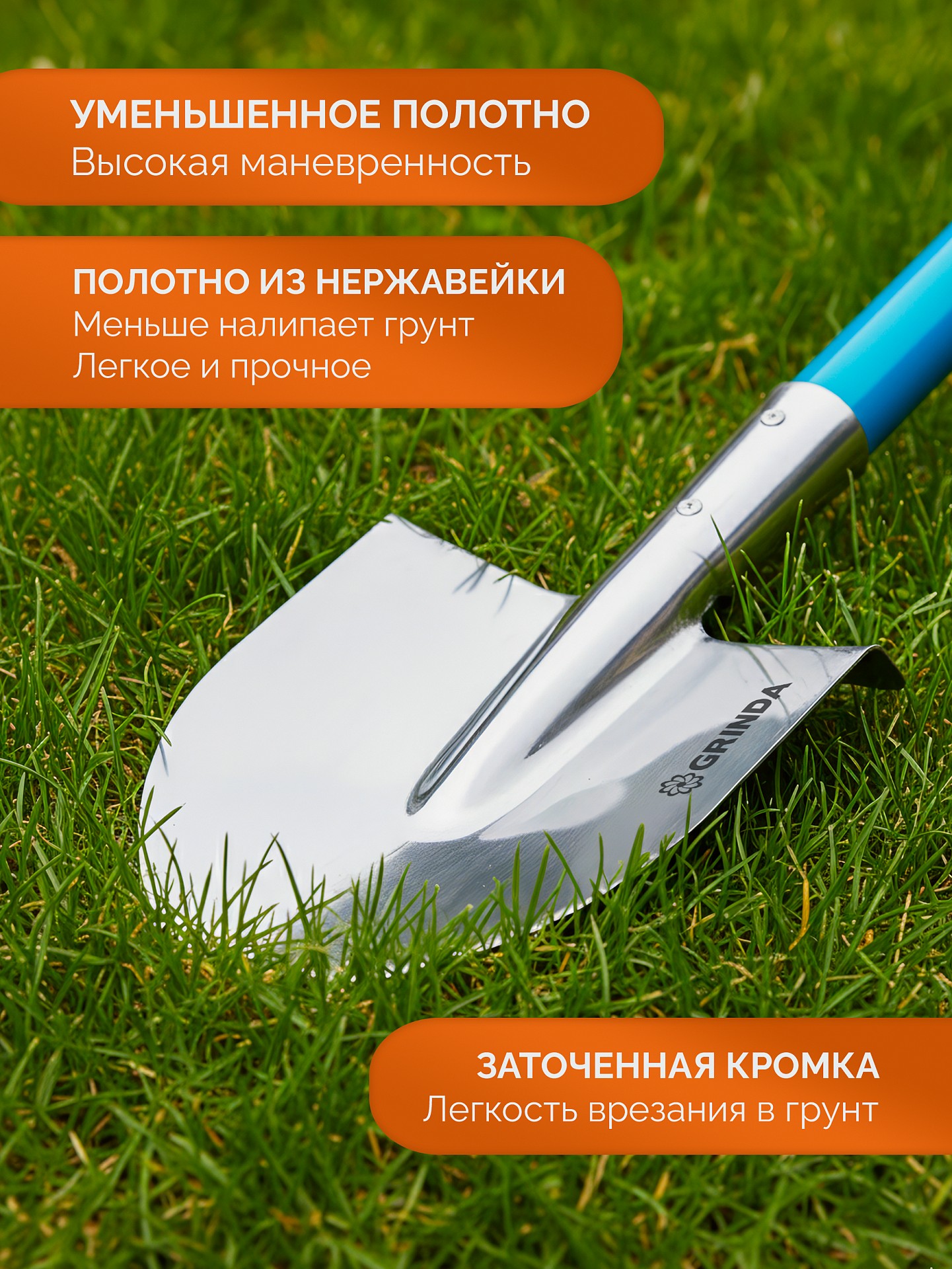 - -Гладкая поверхность полотна предотвращает налипание грунта, что делает копание и перекидывание земли менее трудоемким.,
