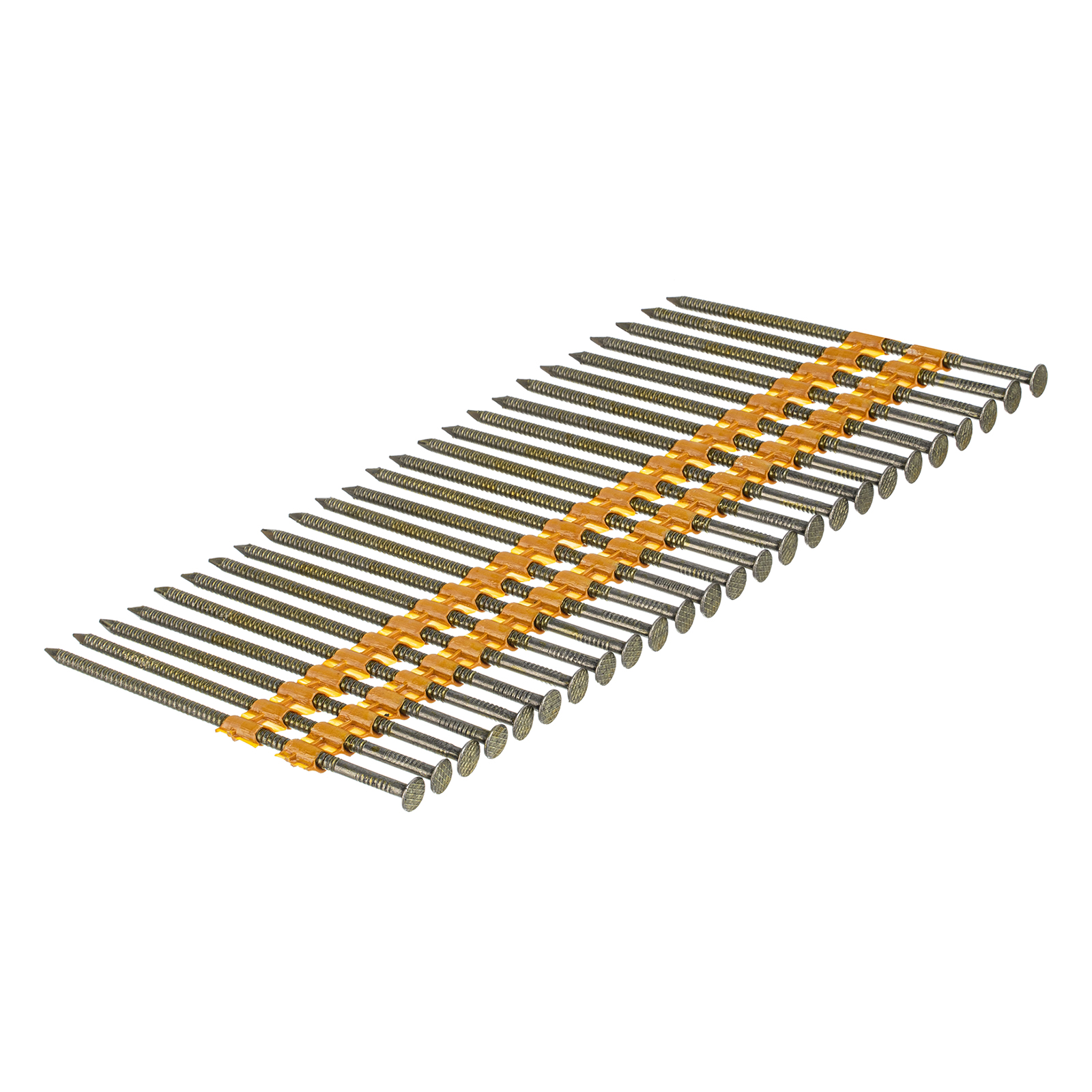 Гвозди Denzel 57700 типа SN21, длиной 90 мм и диаметром 3,05 мм, с крашеной поверхностью, 2000 шт. в упаковке, — расходники для пневматического нейлера. Используются для скрепления различных материалов, будут полезны во время сборочных и отделочных работ.