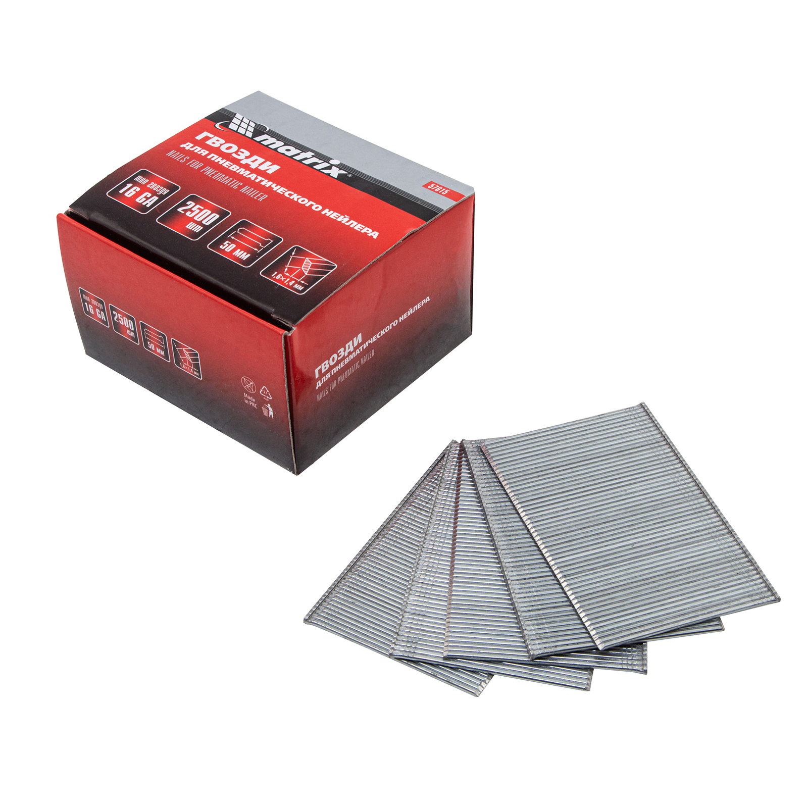 Гвозди Matrix 16GA 57615 совместимы с любыми пневмонейлерами, которые заправляются крепежом 1,6 х 1,4 х 50 мм. Они подходят для бытового применения, работ в небольших мастерских и на производствах для декорирования деревянных изделий, соединения листовых материалов из ДСП, оргалита и металла.
