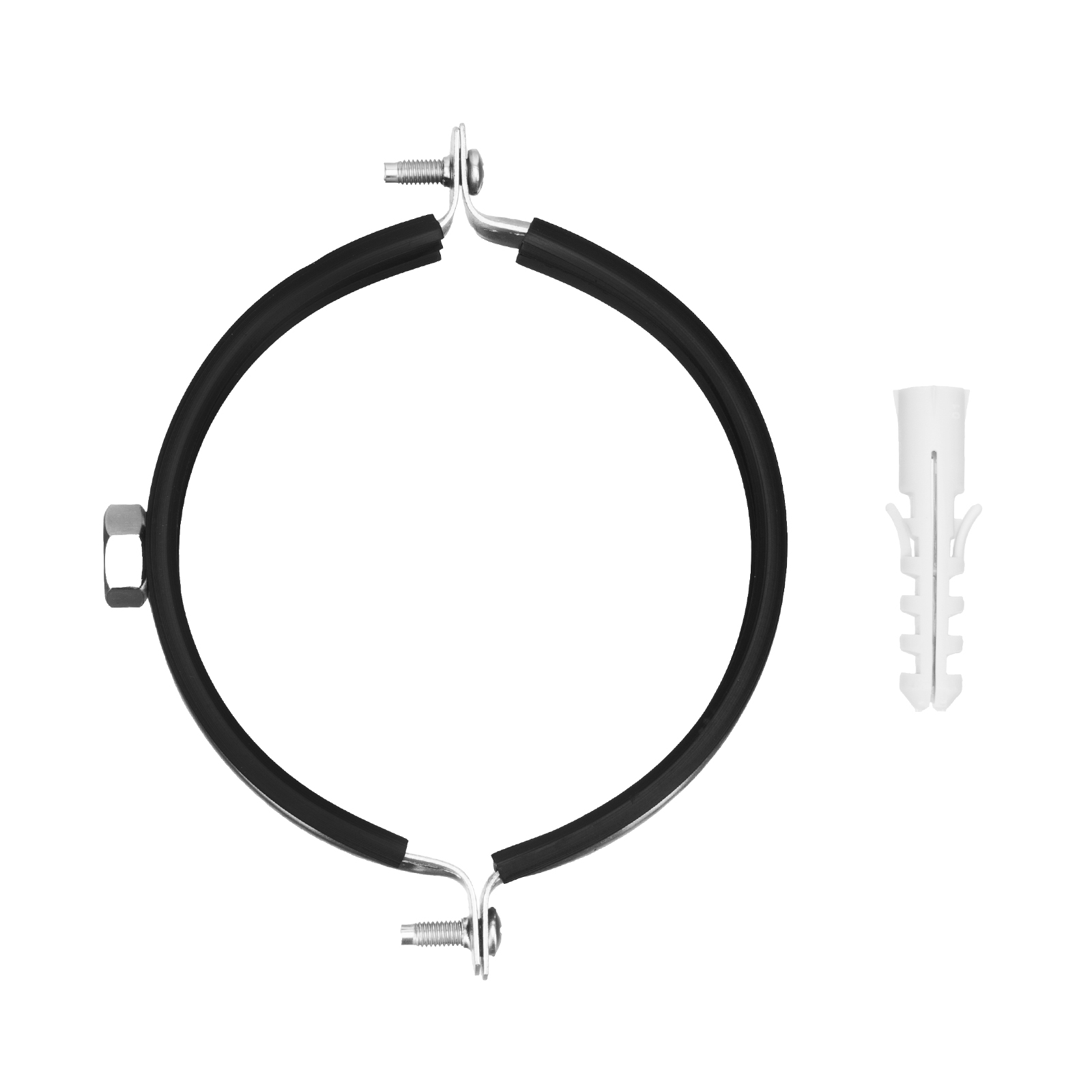 - Хомут укомплектован шпилькой и дюбелем для удобства и простоты установки.