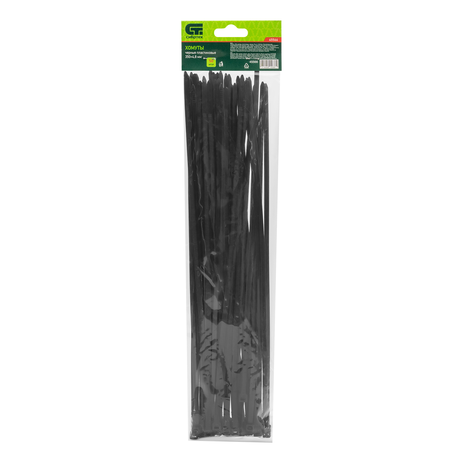 Черные пластиковые хомуты Сибртех 45566, 100 х 4,8 мм, 50 шт. в упаковке, используются для стяжки кабелей, закрепления трубок, шлангов, рекламных конструкций, а также для упаковки различных предметов. Пригодятся во время прокладки электрических и локальных вычислительных сетей, ремонта компьютерной техники, оформлении торговых стендов, комплектовании товара, будут также полезны дома, на даче и в гараже.