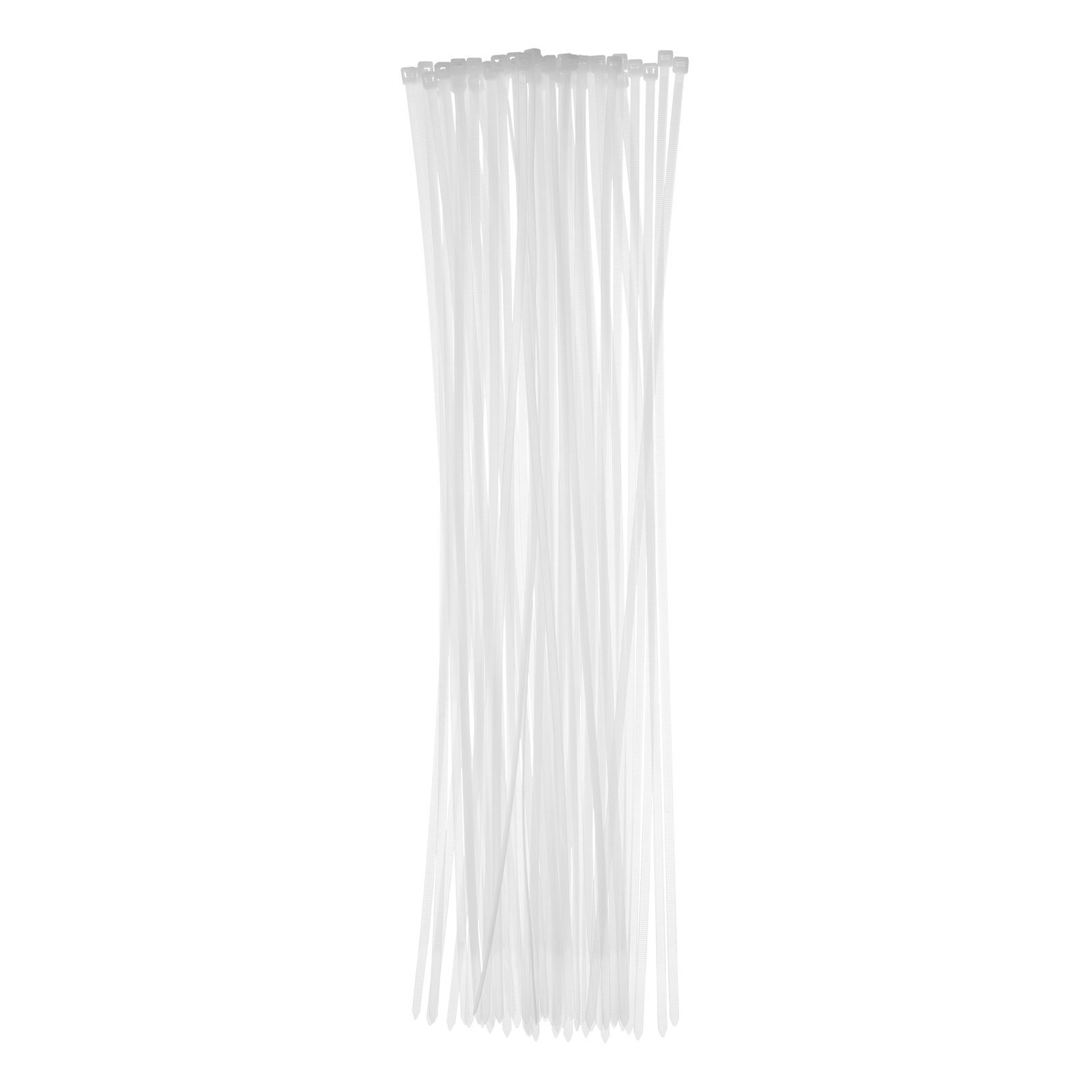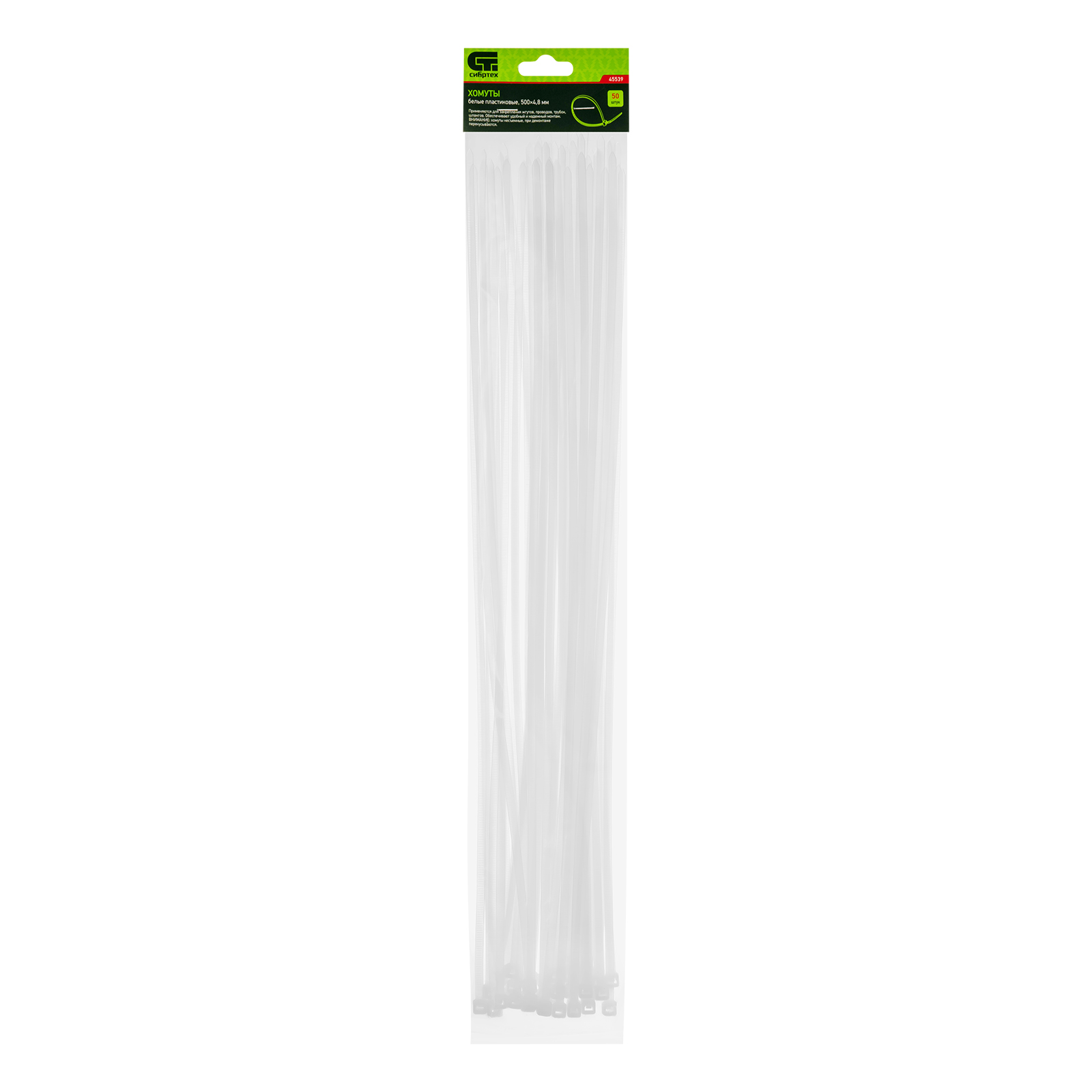 Белые пластиковые хомуты Сибртех 45539, 500 х 4,8 мм, 50 шт. в упаковке, используются для стяжки кабелей, закрепления трубок, шлангов, рекламных конструкций, а также для упаковки различных предметов. Пригодятся во время прокладки электрических и локальных вычислительных сетей, ремонта компьютерной техники, оформлении торговых стендов, комплектовании товара, будут также полезны дома, на даче и в гараже.