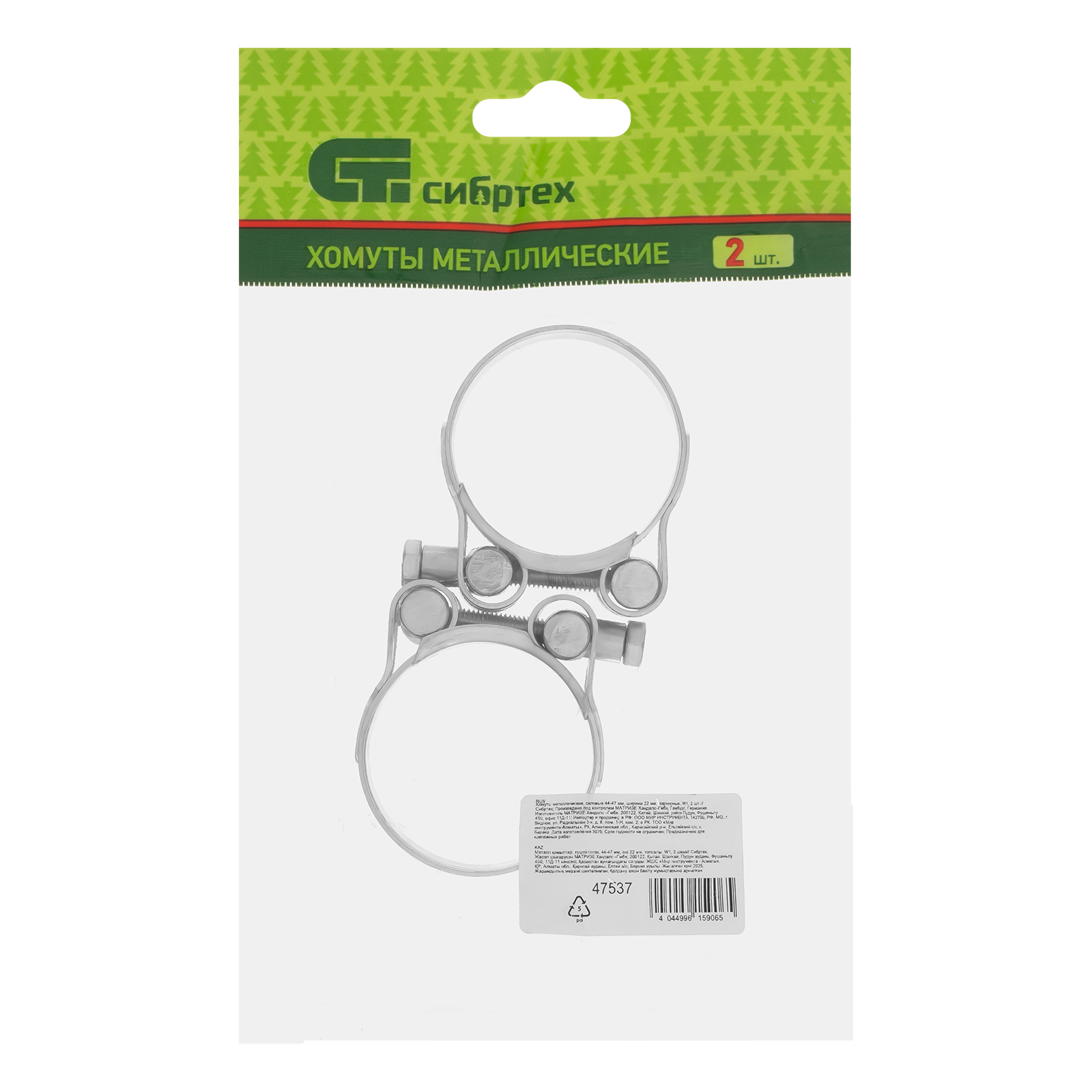Силовые металлические хомуты Сибртех 47537 шириной 22 мм, из оцинкованной стали (W1), шарнирные, 2 шт. в упаковке, имеют диаметр охвата 44-47 мм и предназначены для обжима труб и жестких шлангов, испытывающих высокое давление и вибрацию. Каждый хомут имеет усиленный корпус с шарниром для удобного раскрытия. Изделия используются для монтажа трубопроводов.