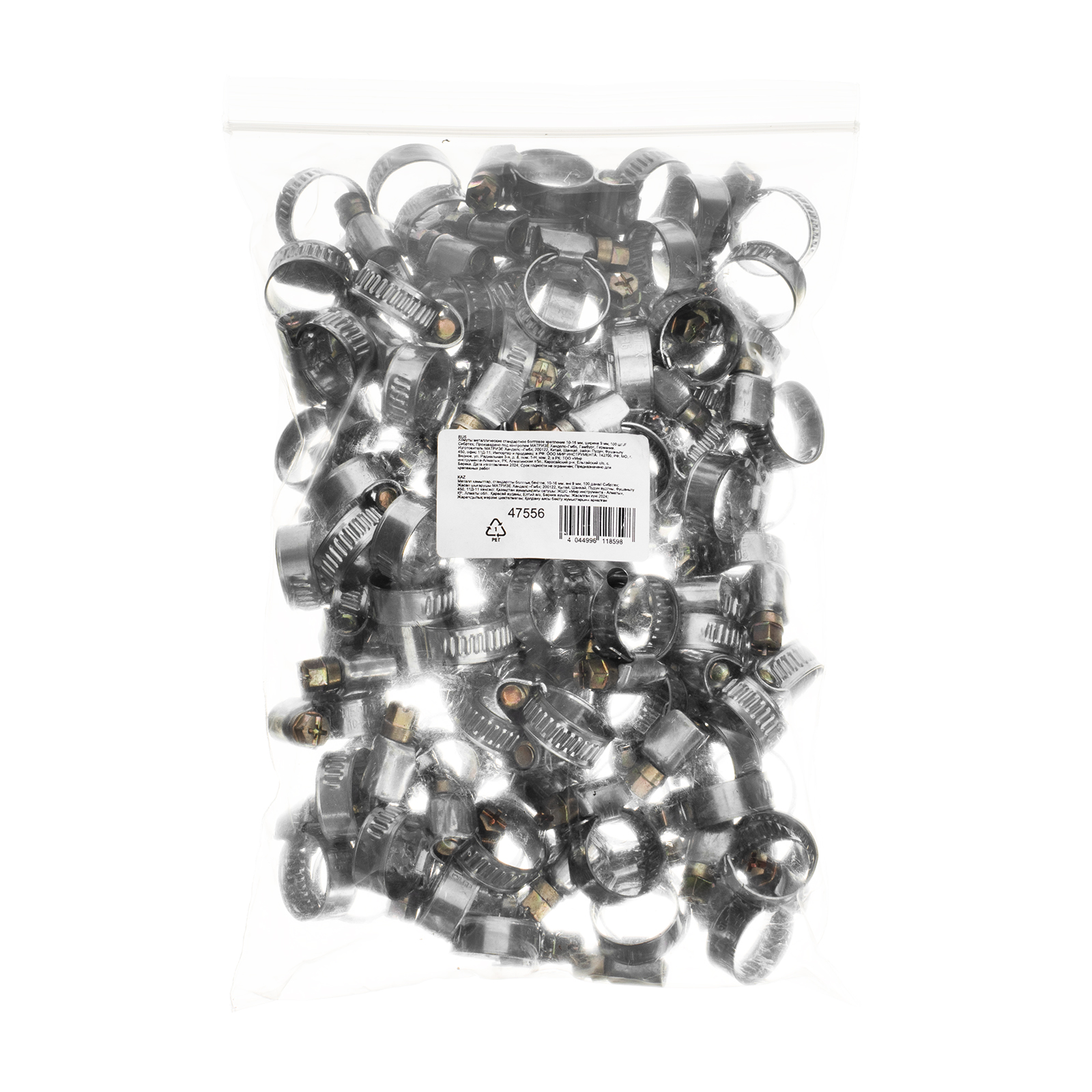 Металлические хомуты Сибртех 47556 со стандартным болтовым креплением, диаметром охвата 10-16 мм и шириной 9 мм, 100 шт. в упаковке, — крепежные элементы для соединения труб и шлангов. Обеспечивают плавную регулировку диаметра обжима, подходят для многократного использования. Строительные стяжки применяют для монтажа водопроводных, отопительных, вентиляционных систем.