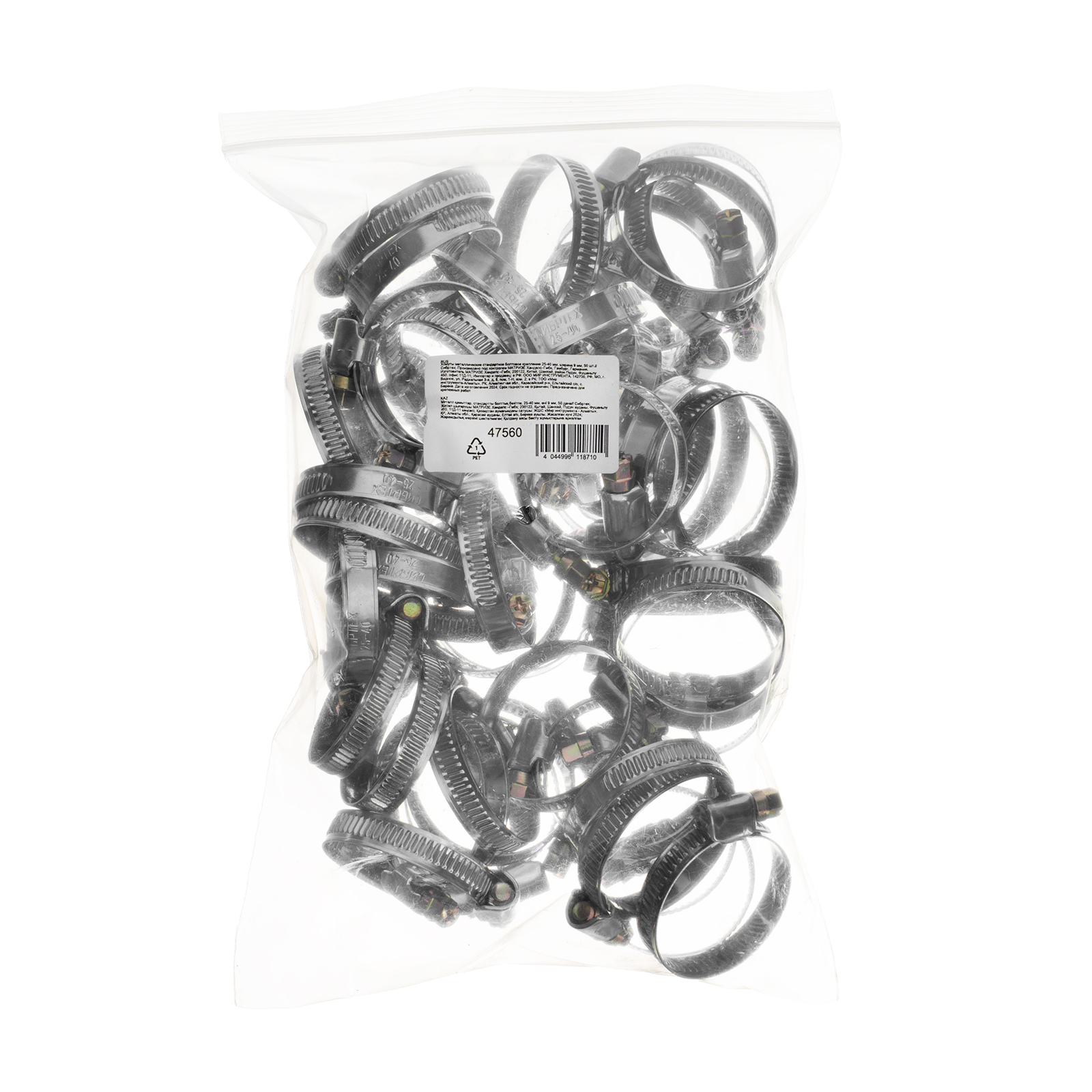 Металлические хомуты Сибртех 47560 со стандартным болтовым креплением, диаметром охвата 25-40 мм и шириной 9 мм, 50 шт. в упаковке, — крепежные элементы для соединения труб и шлангов. Обеспечивают плавную регулировку диаметра обжима, подходят для многократного использования. Строительные стяжки применяют для монтажа водопроводных, отопительных, вентиляционных систем.