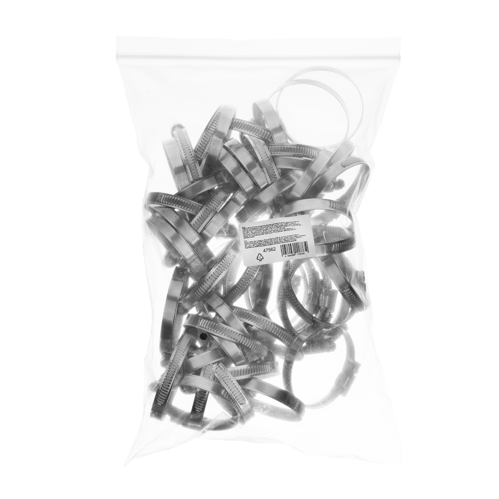 Металлические хомуты Сибртех 47562 со стандартным болтовым креплением, диаметром охвата 40-60 мм и шириной 9 мм, 50 шт. в упаковке, — крепежные элементы для соединения труб и шлангов. Обеспечивают плавную регулировку диаметра обжима, подходят для многократного использования. Строительные стяжки применяют для монтажа водопроводных, отопительных, вентиляционных систем.