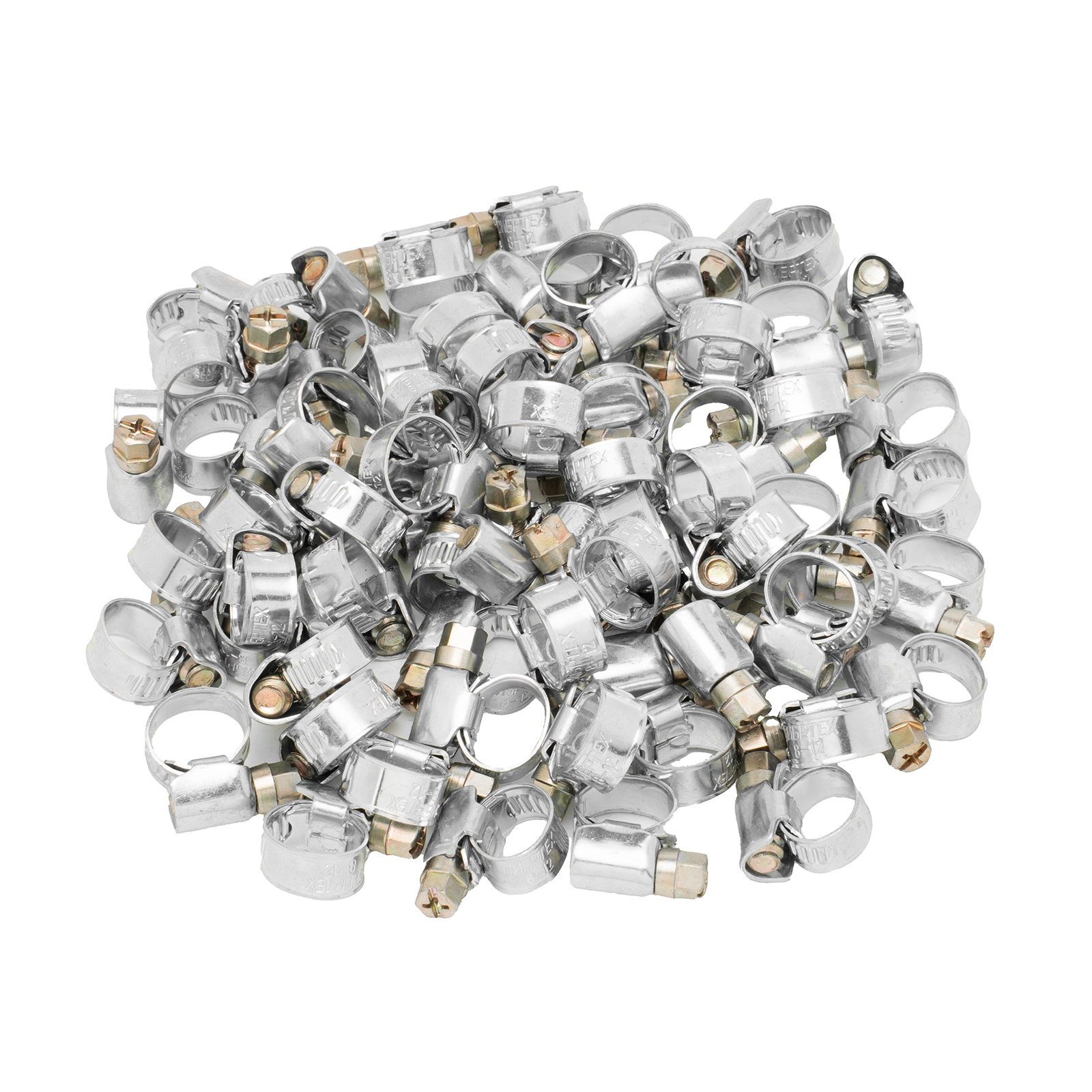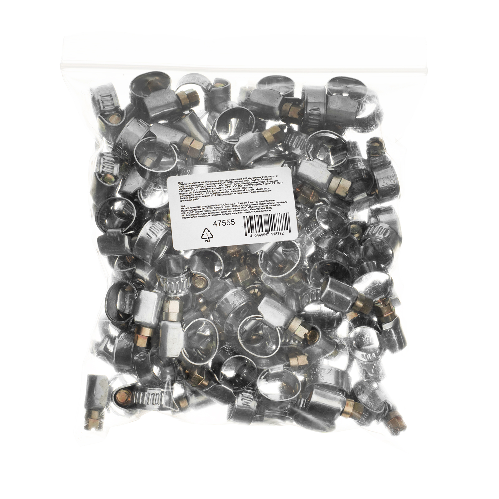 Металлические хомуты Сибртех 47555 со стандартным болтовым креплением, диаметром охвата 8-12 мм и шириной 9 мм, 100 шт. в упаковке, — крепежные элементы для соединения труб и шлангов. Обеспечивают плавную регулировку диаметра обжима, подходят для многократного использования. Строительные стяжки применяют для монтажа водопроводных, отопительных, вентиляционных систем.