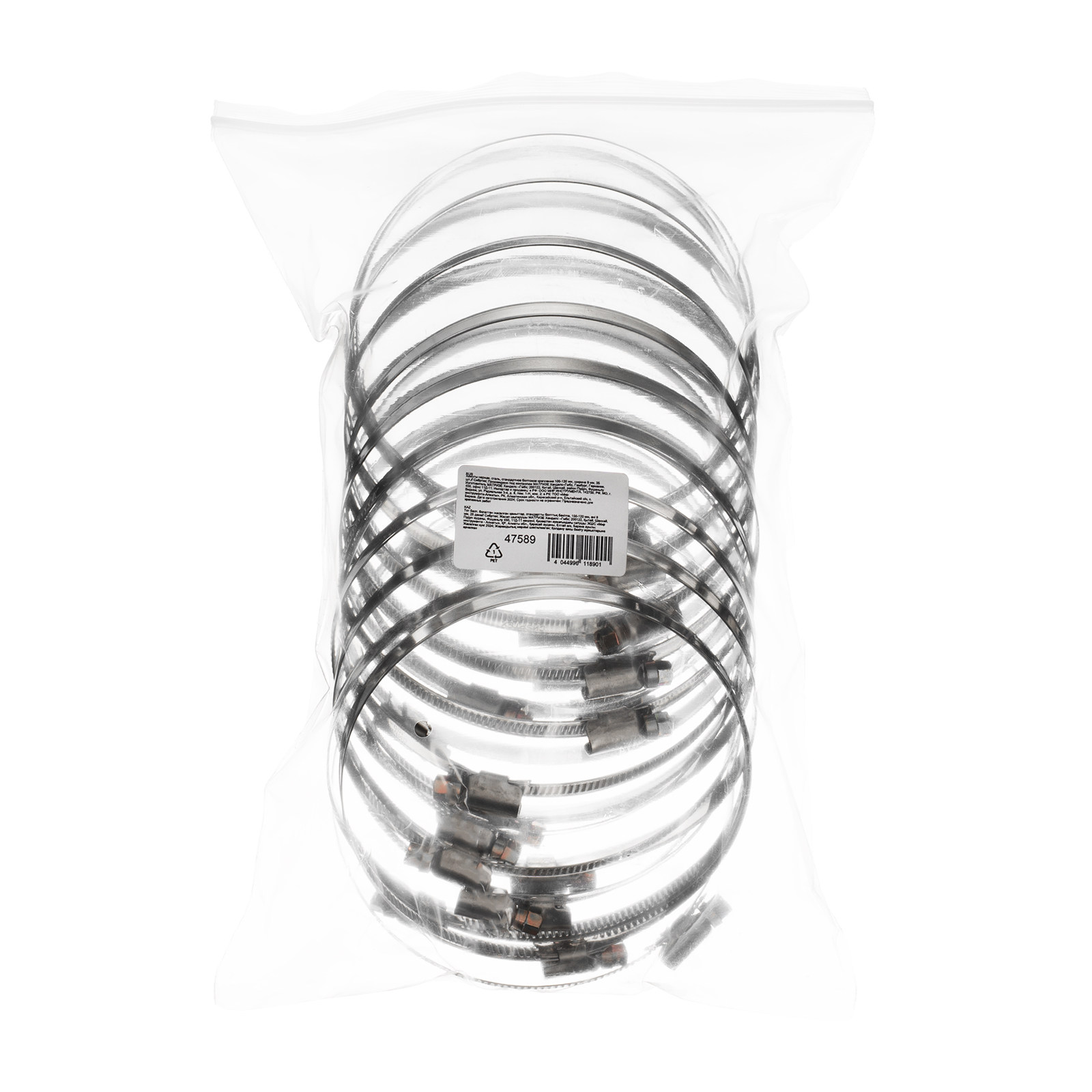 Хомуты Сибртех 47589 из нержавеющей стали, со стандартным болтовым креплением, с диаметом охвата 100-120 мм, шириной 9 мм, 25 шт. в упаковке, — крепежные элементы, применяющиеся для соединения шлангов и труб. Подходят для многократного использования. Хомуты затягиваются винтами, что обеспечивает удобство и надежность фиксации. Могут быть использованы для монтажа трубопроводных систем и обеспечения герметичных соединений в различных инженерных и транспортных системах.