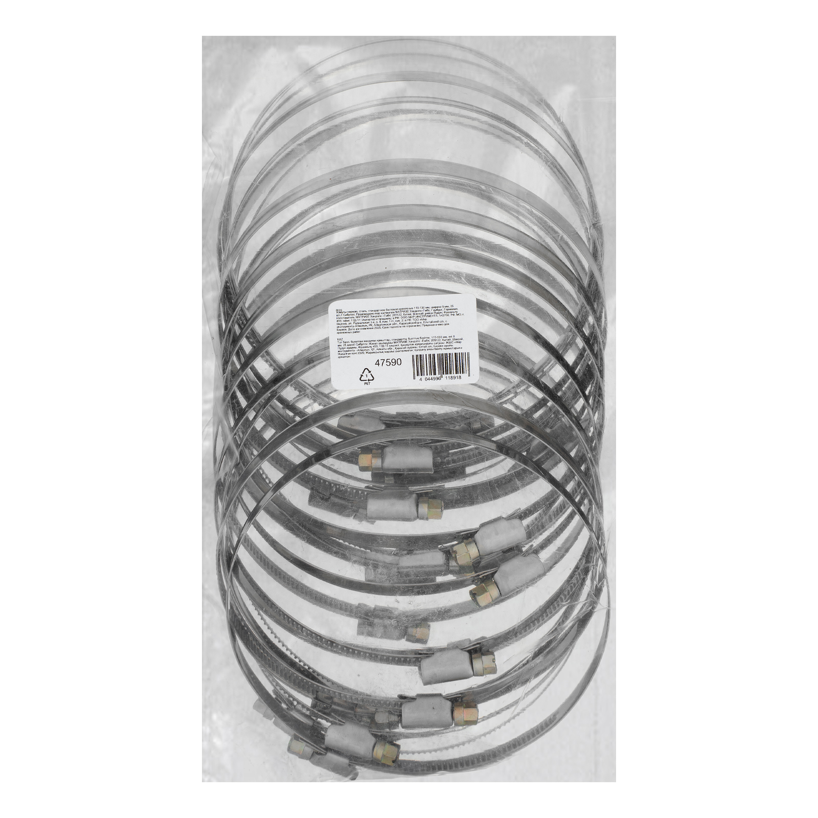 Хомуты Сибртех 47590 из нержавеющей стали, со стандартным болтовым креплением, с диаметом охвата 110-130 мм, шириной 9 мм, 25 шт. в упаковке, — крепежные элементы, применяющиеся для соединения шлангов и труб. Подходят для многократного использования. Хомуты затягиваются винтами, что обеспечивает удобство и надежность фиксации. Могут быть использованы для монтажа трубопроводных систем и обеспечения герметичных соединений в различных инженерных и транспортных системах.