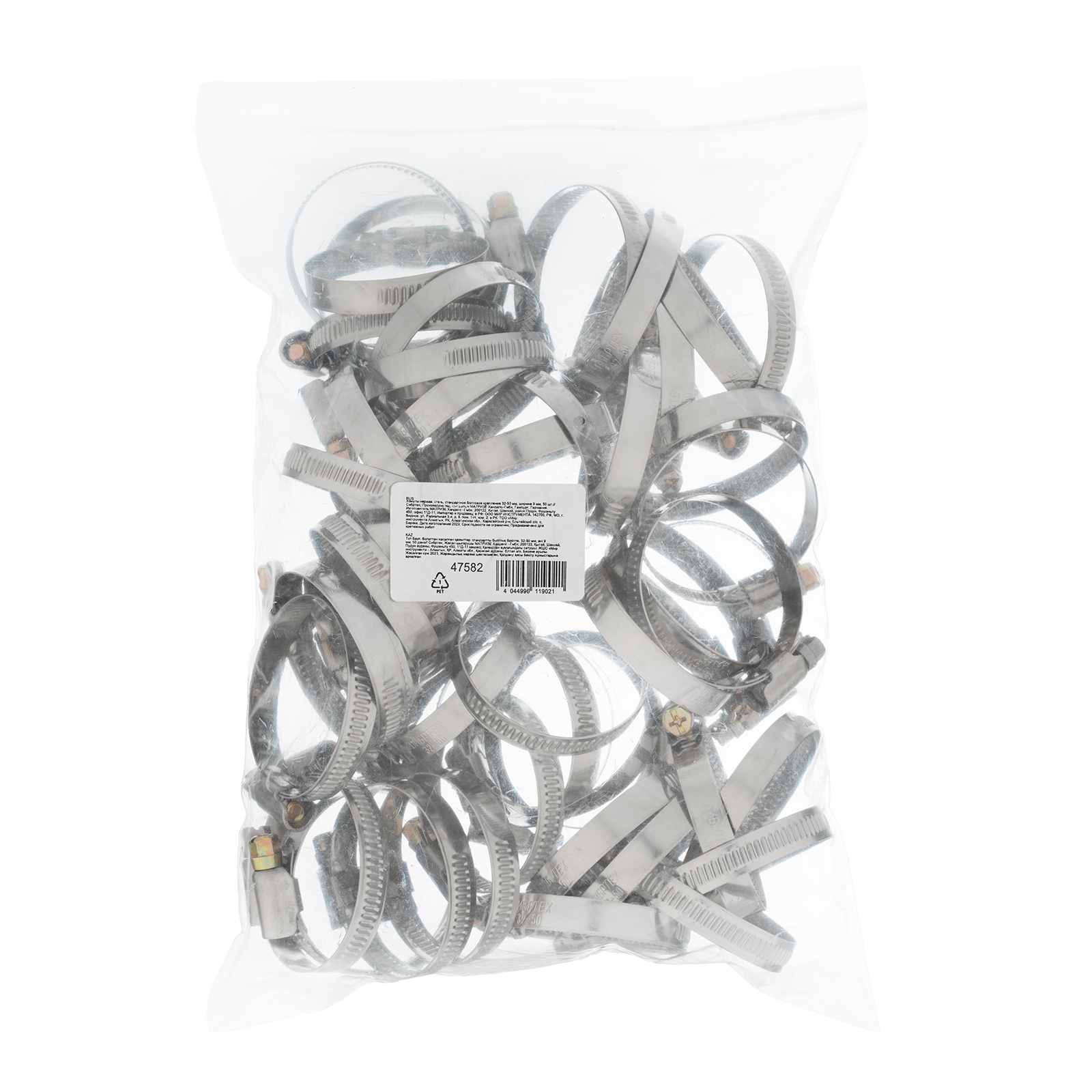 Хомуты Сибртех 47582 из нержавеющей стали, со стандартным болтовым креплением, с диаметом охвата 32-50 мм, шириной 9 мм, 25 шт. в упаковке, — крепежные элементы, применяющиеся для соединения шлангов и труб. Подходят для многократного использования. Хомуты затягиваются винтами, что обеспечивает удобство и надежность фиксации. Могут быть использованы для монтажа трубопроводных систем и обеспечения герметичных соединений в различных инженерных и транспортных системах.