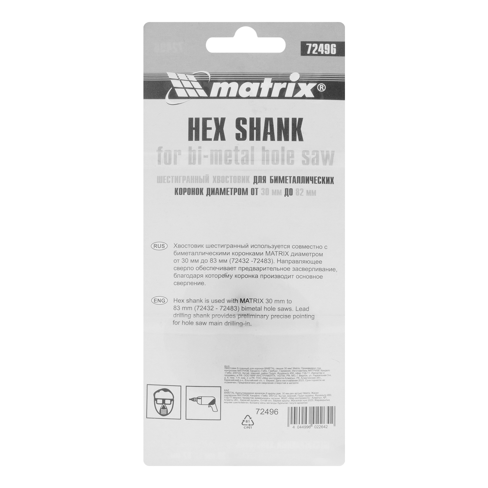 Шестигранный хвостовик Matrix 72496 применяется вместе с коронками линейки BIMETAL 72432-72499 диаметром 32-140 мм. С помощью направляющего сверла осуществляется предварительное засверливание, за счет чего повышается точность работы. Хвостовик будет полезен как начинающим мастерам, так и профессионалам для облегчения сверлильных работ с коронками.