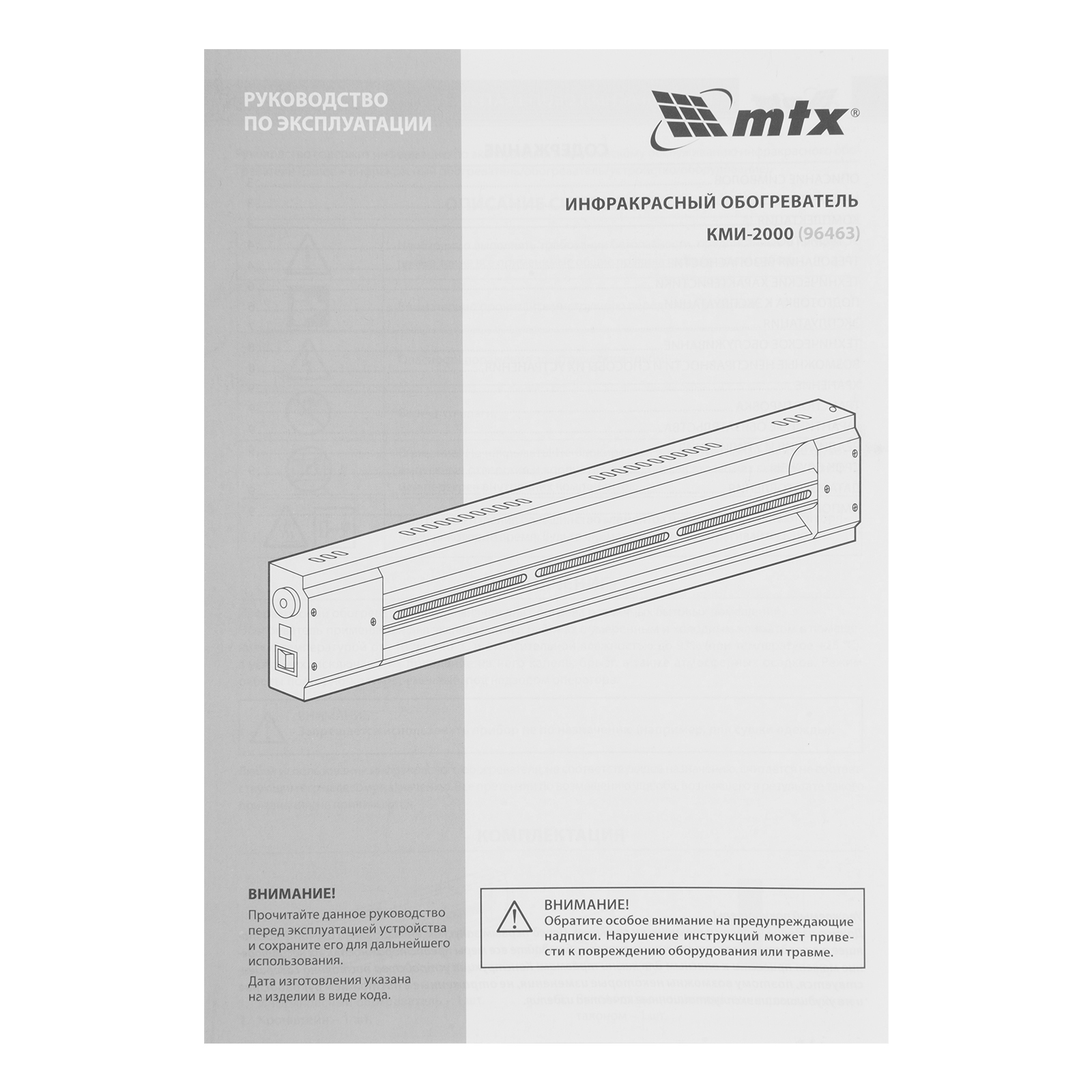 Инфракрасный обогреватель MTX КМИ-2000 96463 с плавной регулировкой мощности в диапазоне 500-2000 Вт работает от сети 230 В и предназначен для обогрева бытовых помещений. Служит основным источником тепла на площади до 20 м² и дополнительным — в помещениях площадью до 40 м². Обеспечивает комфортный микроклимат, поскольку не сушит воздух и не сжигает пыль. Благодаря оптимальной длине волны 5,9 мкм безопасен для здоровья пользователя. Инфракрасные лучи нагревают окружающие поверхности, а не воздух, что позволяет снизить затраты на электроэнергию. Устройство может быть установлено внутри помещений, на крытых верандах, в беседках и теплицах. Сделано в России.
