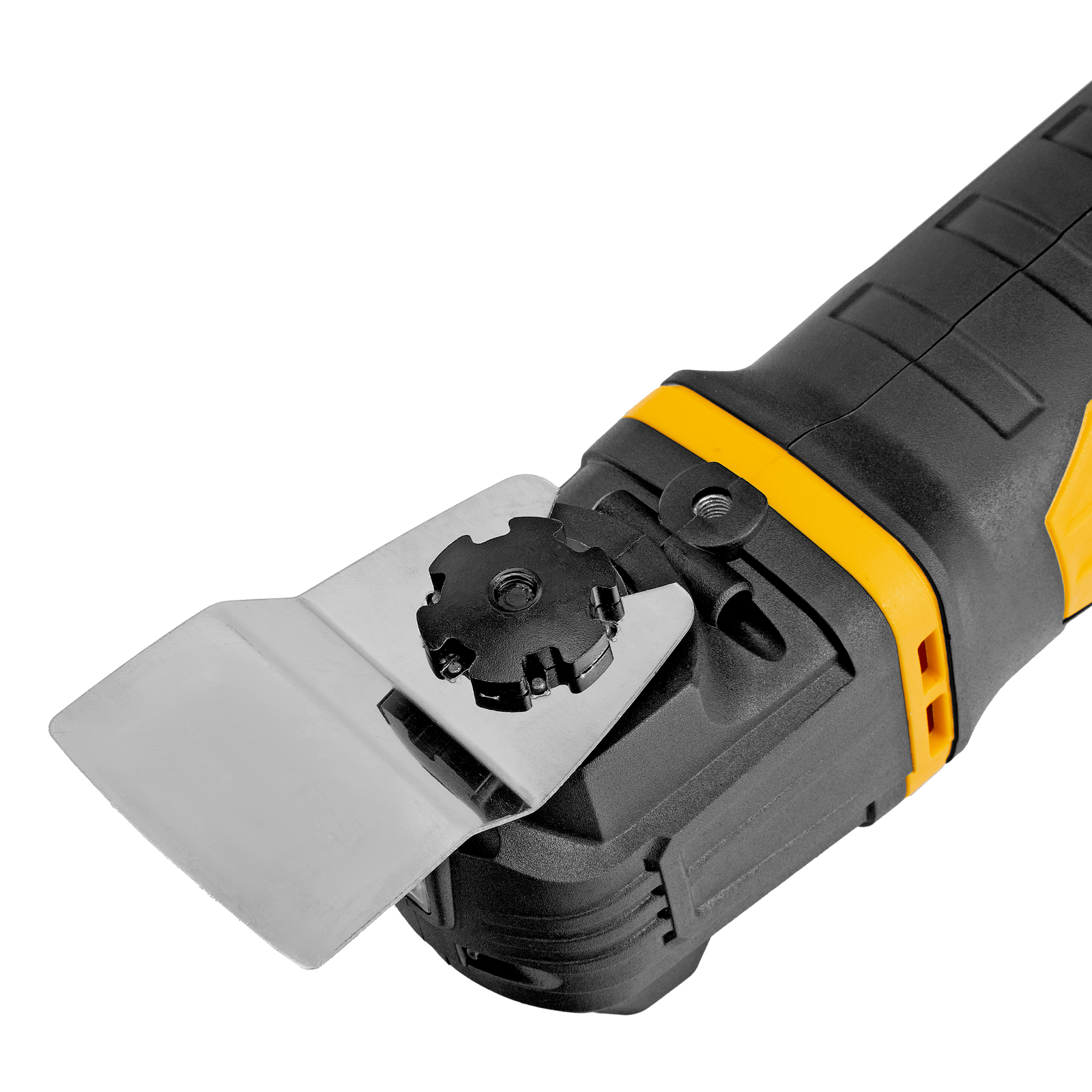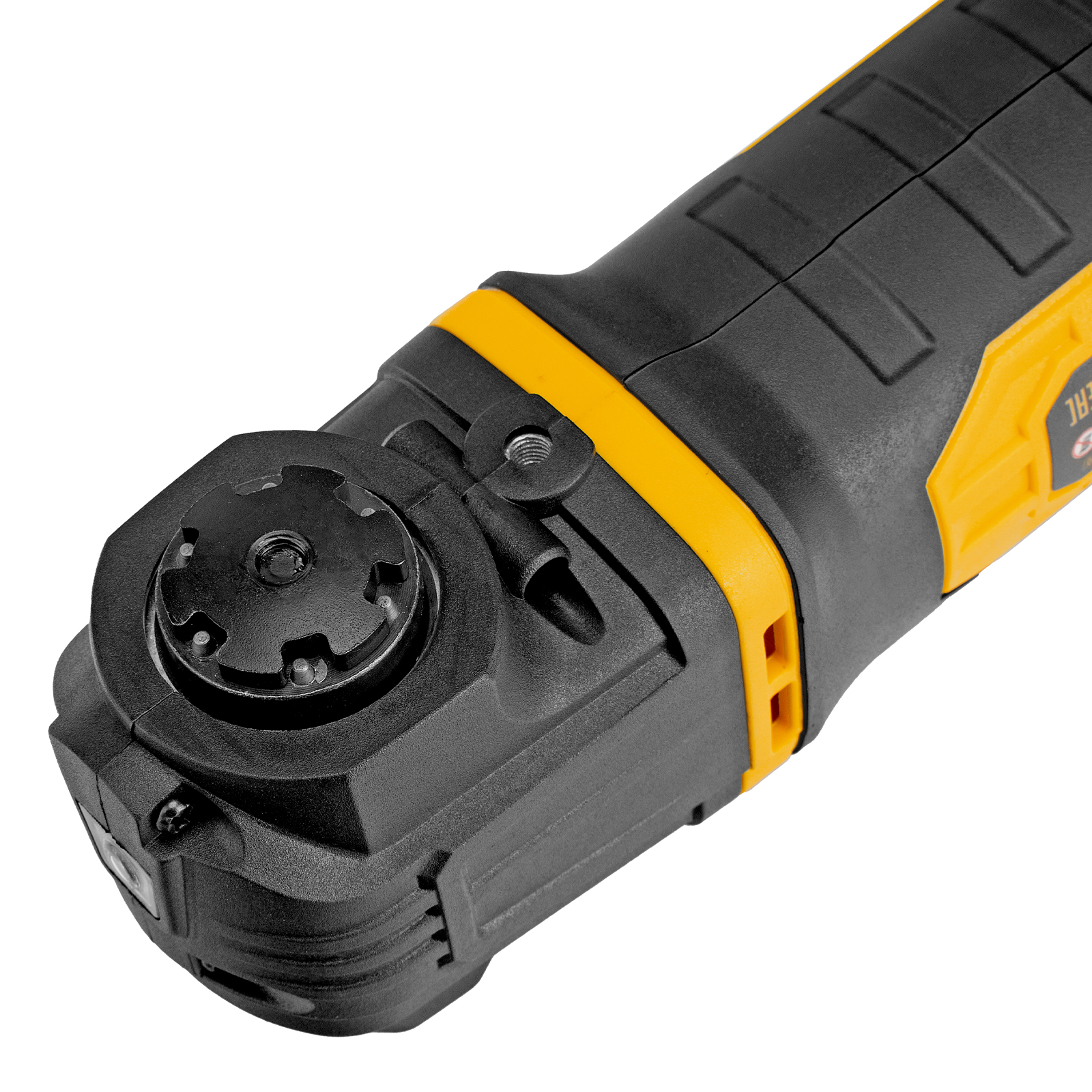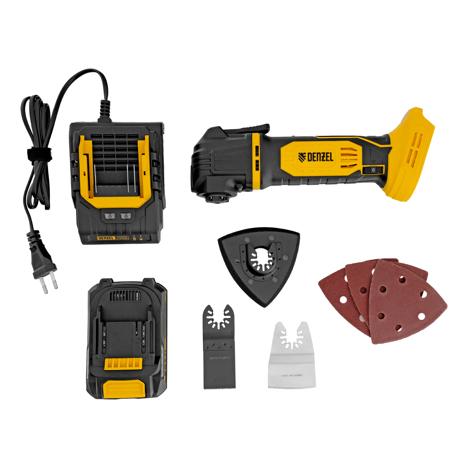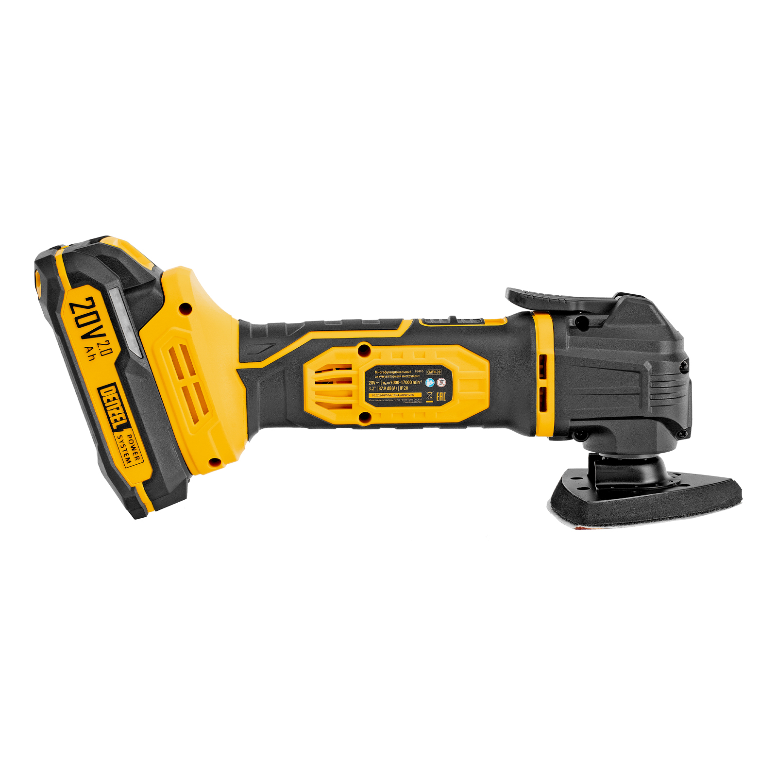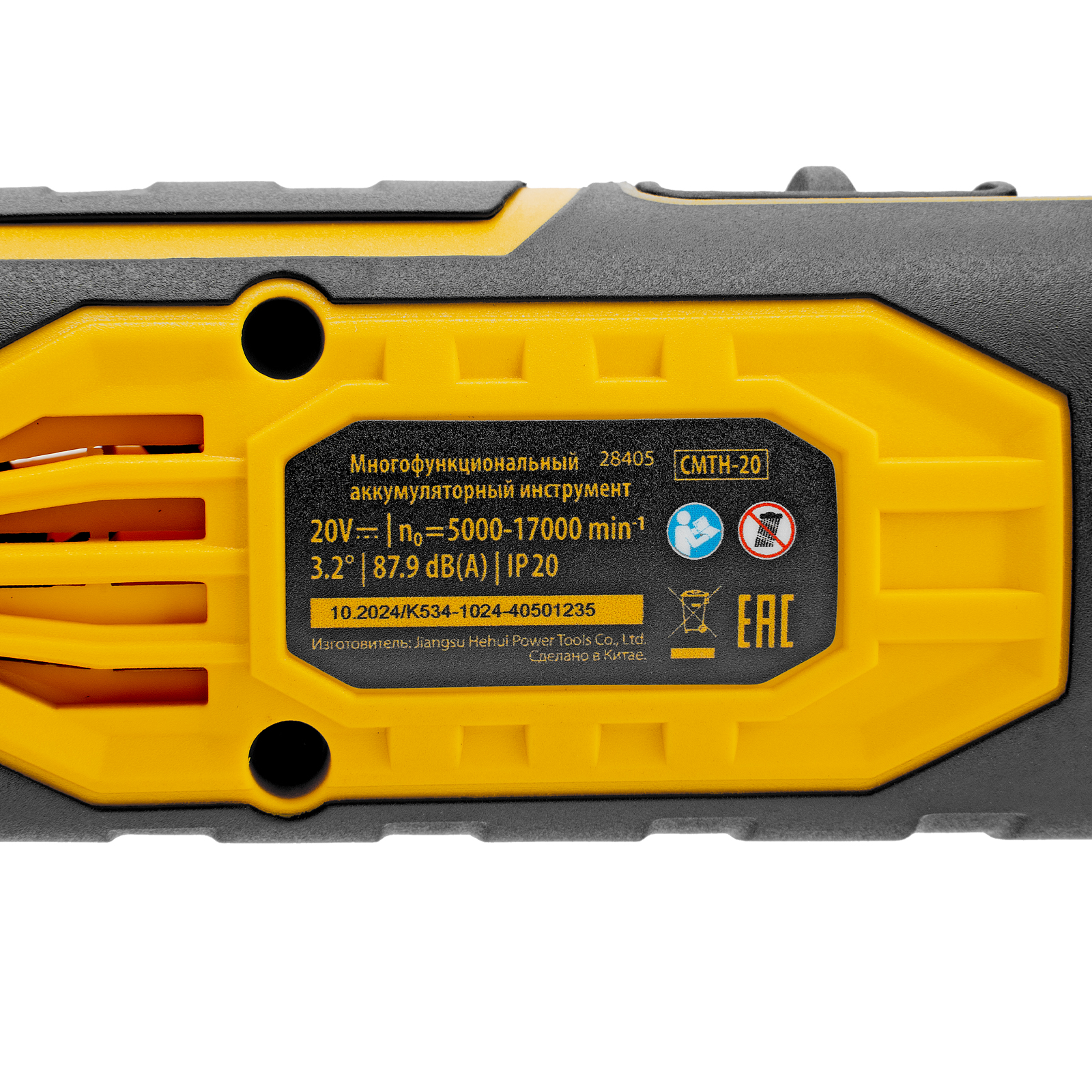 Аккумуляторный многофункциональный инструмент Denzel CMTH-20 28405 работает от источника питания Li-Ion 20 В и используется для выполнения широкого спектра работ: зачистных, отрезных, шлифовальных и т.д. Совместим с различными видами оснастки и подходит для обработки практически любых материалов. Частота колебаний регулируется в диапазоне 5000-17000 об/мин, что позволяет эффективно решать поставленные задачи. Инструмент рекомендован для использования в быту.