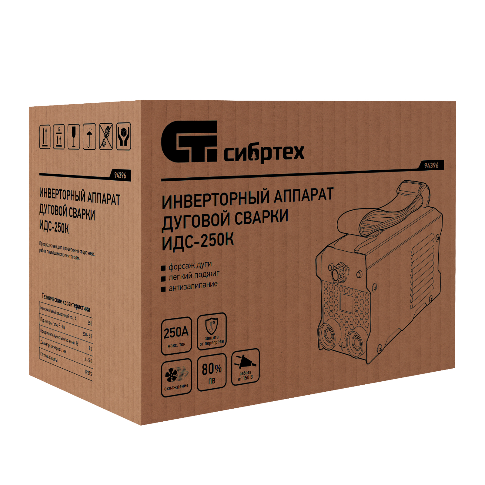 Инверторный аппарат Сибртех ИДС-250К 94396 подходит для использования в бытовых и производственных условиях. Используется для дуговой сварки изделий из низкоуглеродистой стали с помощью штучных электродов диаметром 1,6-5 мм. Диапазон сварочного тока составляет 20-250 А, продолжительность включения (ПВ) на максимальном токе 80% выгодно отличает данную модель. Аппарат не шумит, эффективно работает даже при нестабильном напряжении, оптимален для частных хозяйств, коммунальных служб, аварийно-ремонтных бригад.