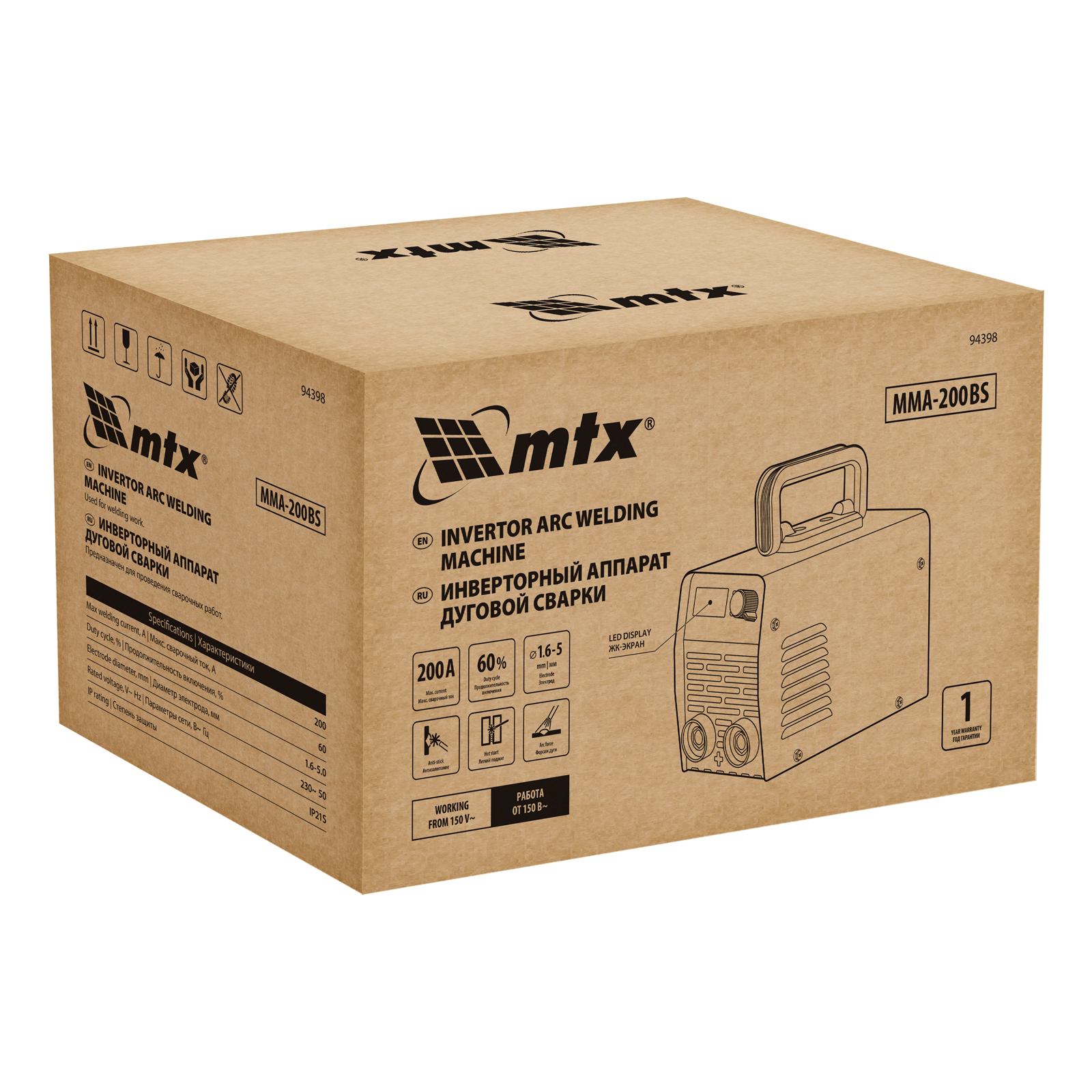 Сварочный аппарат MTX MMA-200BS 94398 предназначен для ручной дуговой сварки и наплавки покрытым электродом заготовок из низкоуглеродистой стали при постоянном токе до 200 A. Работает с электродами диаметром 1,6-5 мм. Продолжительность включения при максимальном токе составляет 60%. Аппарат изготовлен с использованием современных электронных компонентов и стабильно работает даже при пониженном напряжении величиной от 150 В. Пригодится сотрудникам коммунальных служб, также будет полезен в быту.