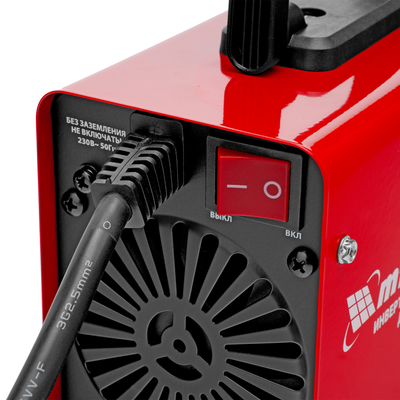 - Удобная настройка — величина сварочного тока устанавливается при помощи поворотного регулятора.
