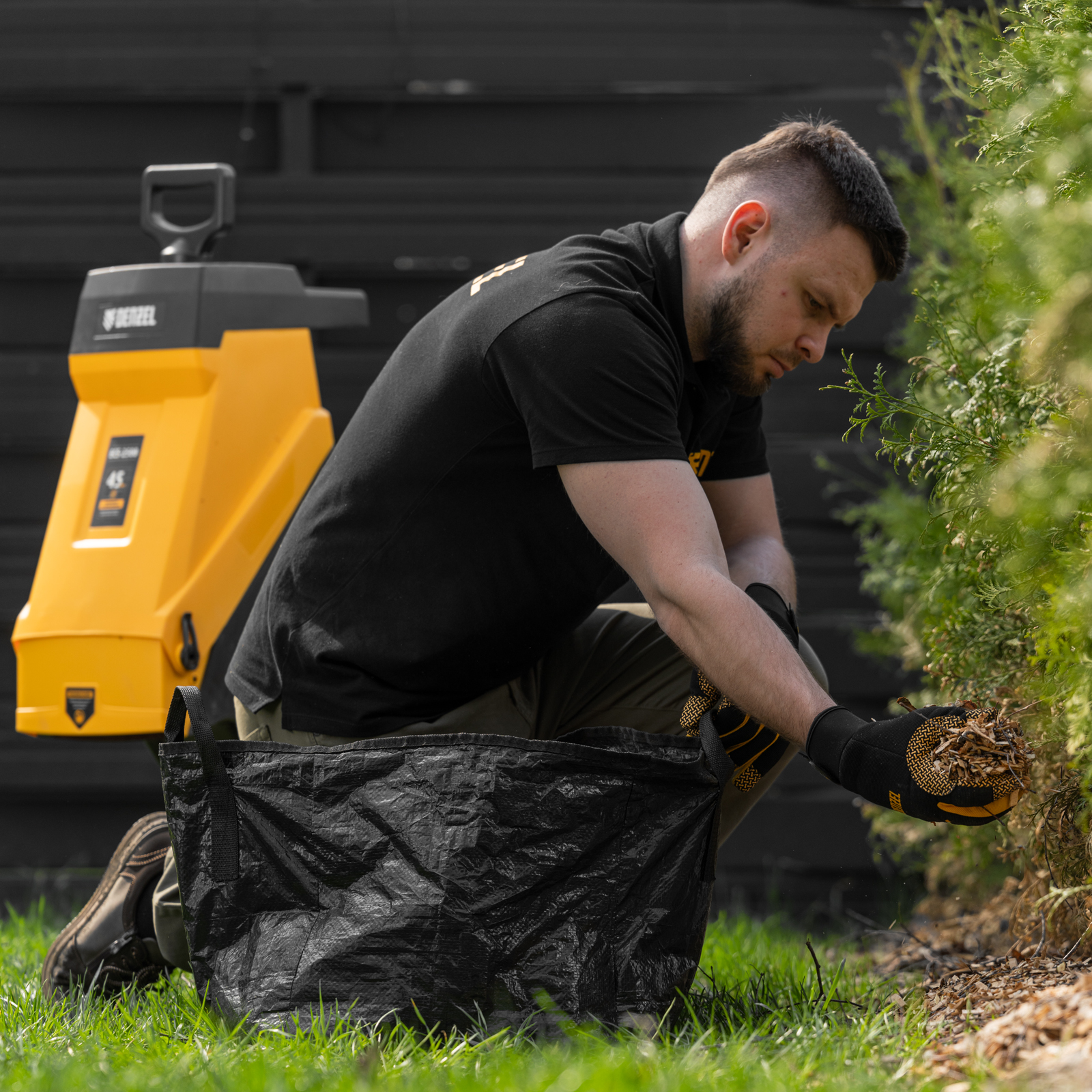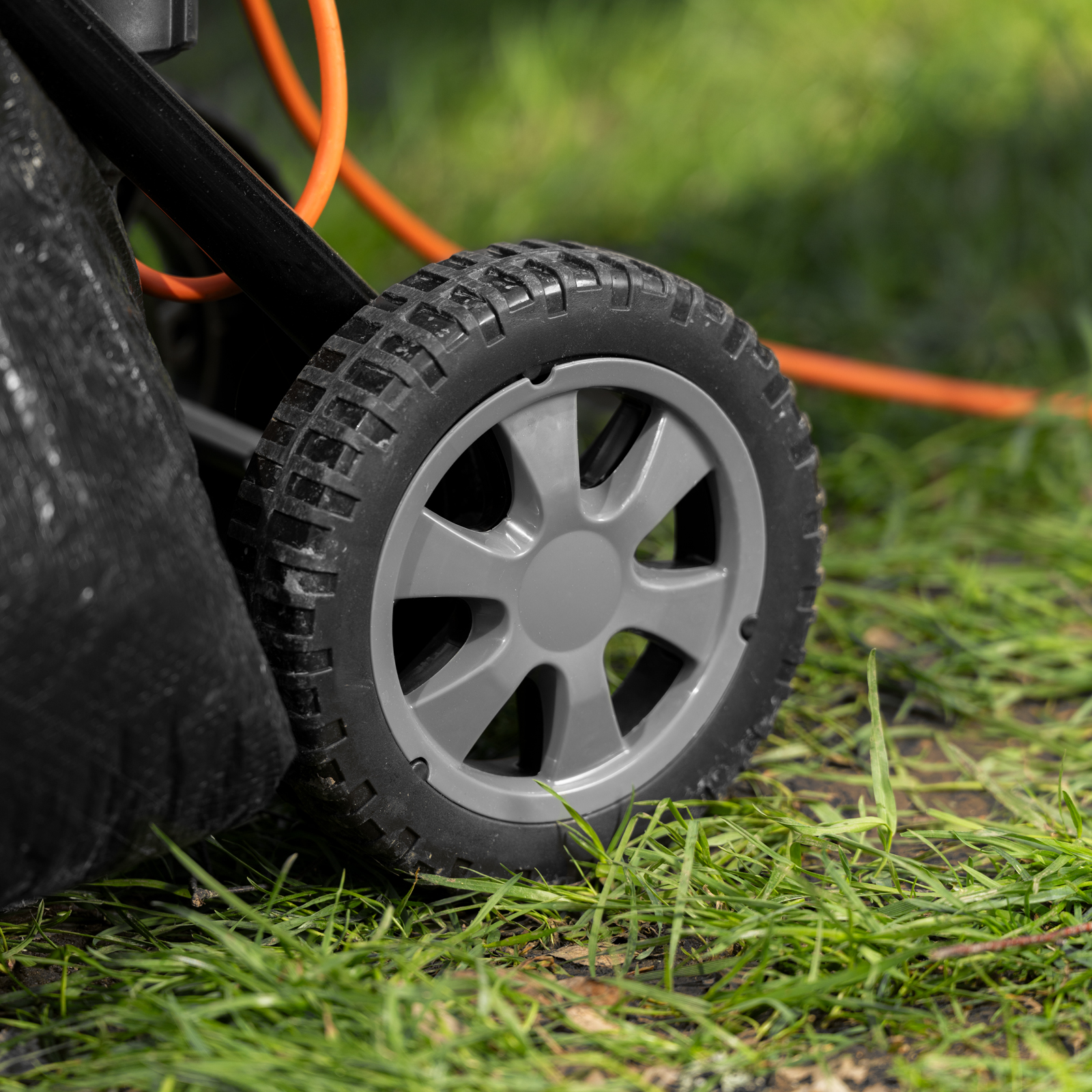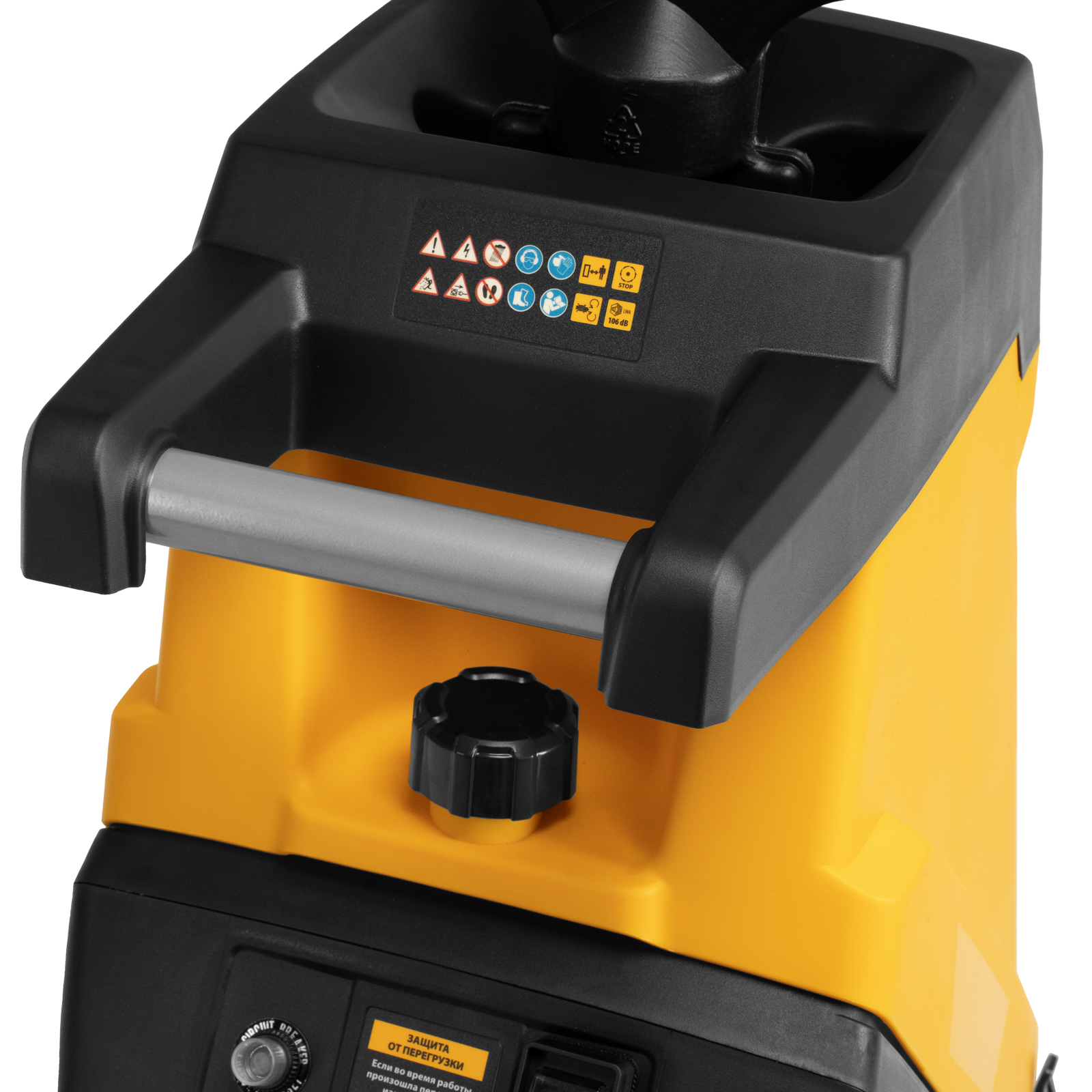 - Маневренность — для удобного перемещения по участку измельчитель оснащен колесами и ручкой.