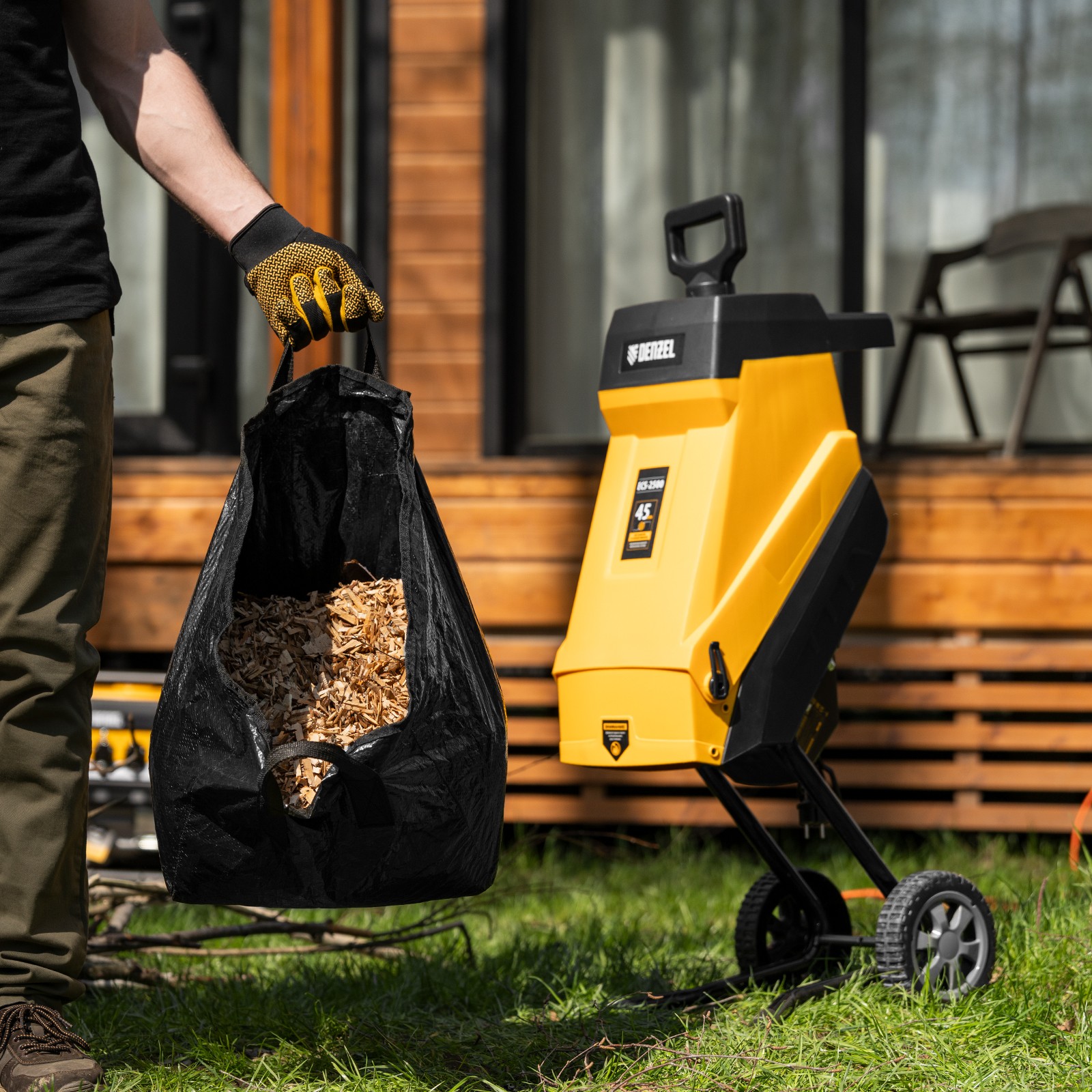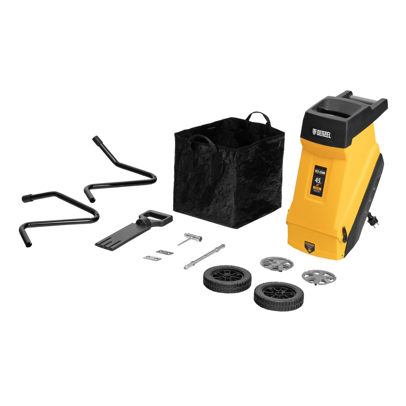 Измельчитель садовый электрический Denzel ECS-2500 59701 мощностью 2500 Вт предназначен для утилизации веток, листвы, скошенной растительности диаметром до 45 мм. Станет незаменимым помощником в саду или на даче, позволит поддерживать порядок на приусадебном участке. Скорость вращения режущих элементов составляет 4100 оборотов в минуту, что позволяет быстро решать поставленные задачи.