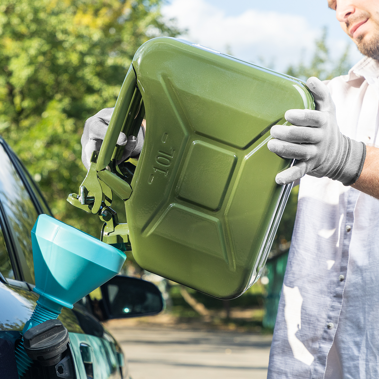 - Продуманная конструкция — тройная ручка обеспечивает удобство при переноске канистры и устойчивость при ее использовании.
