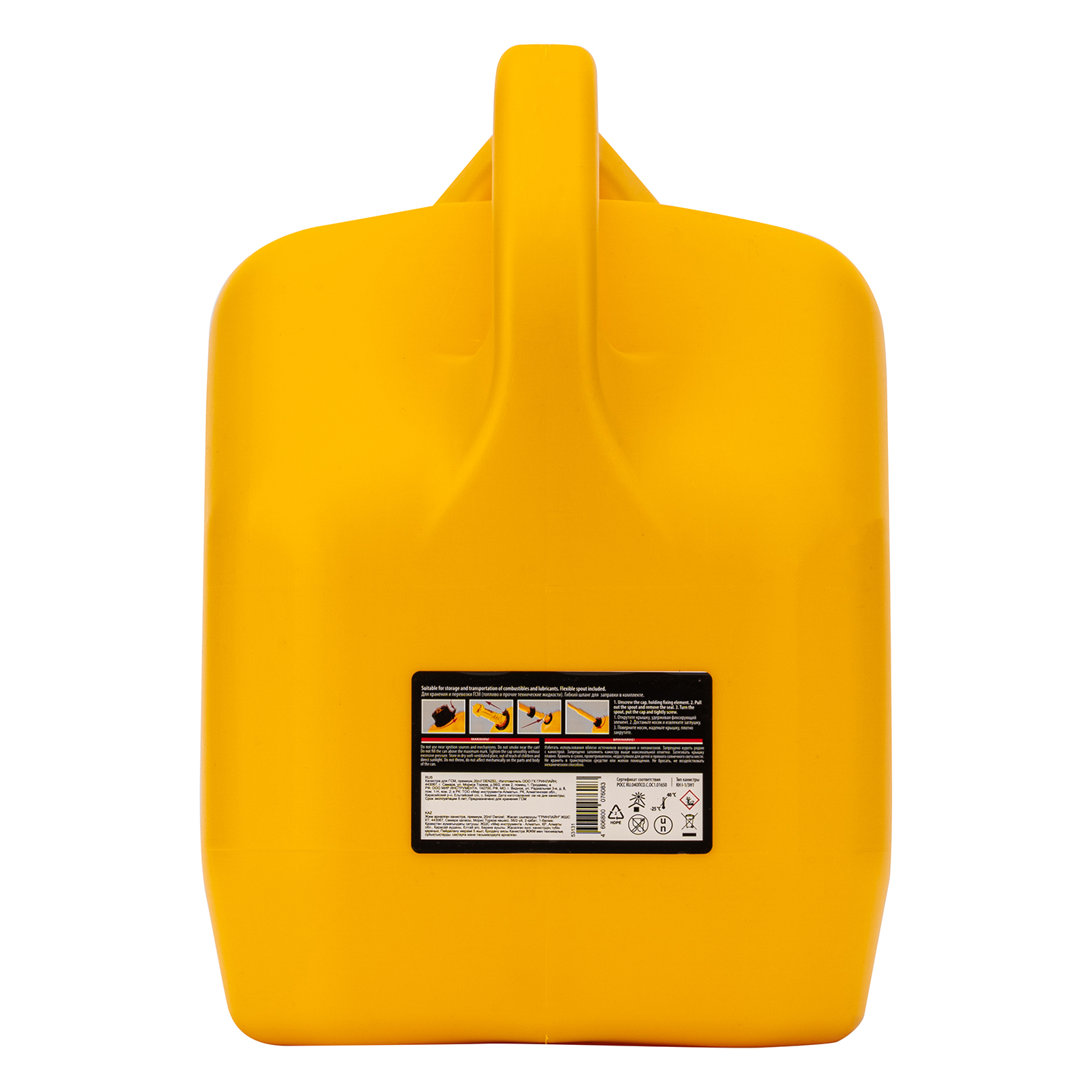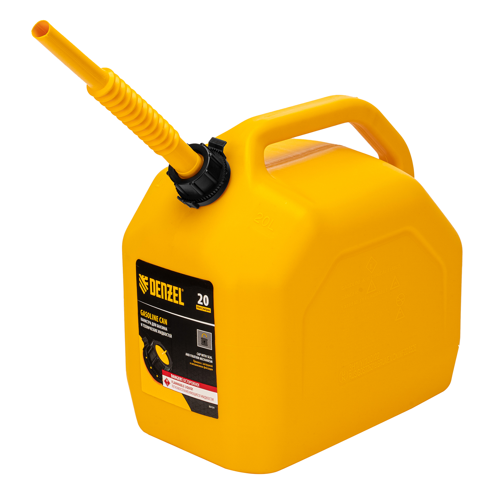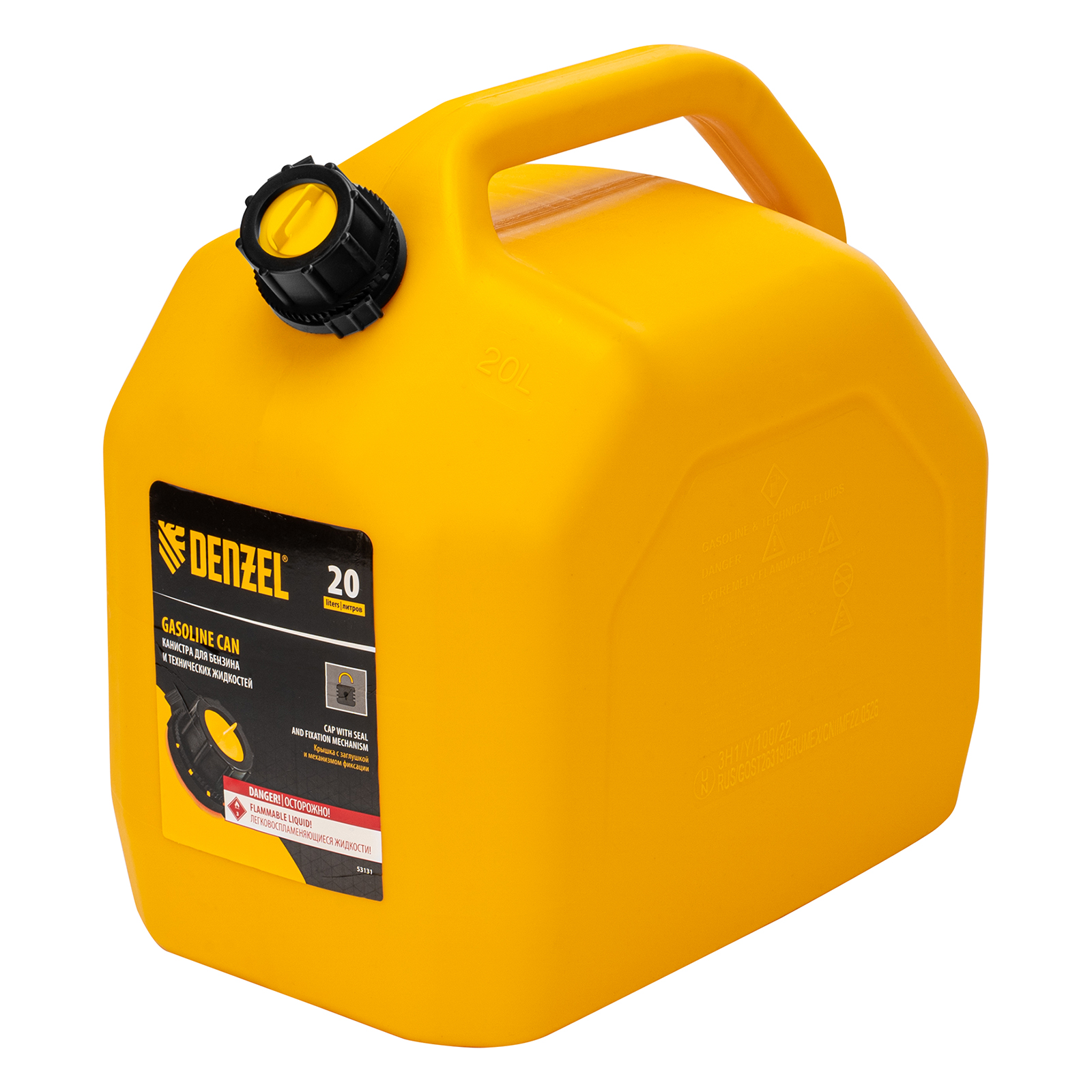 Премиум-канистра DENZEL 53131 объемом 20 л используется для хранения и транспортировки ГСМ. Ее удобно брать в дорогу, а также можно поставить на даче, или в гараже. Канистра пригодится для заправки автомобиля и бензотехники.