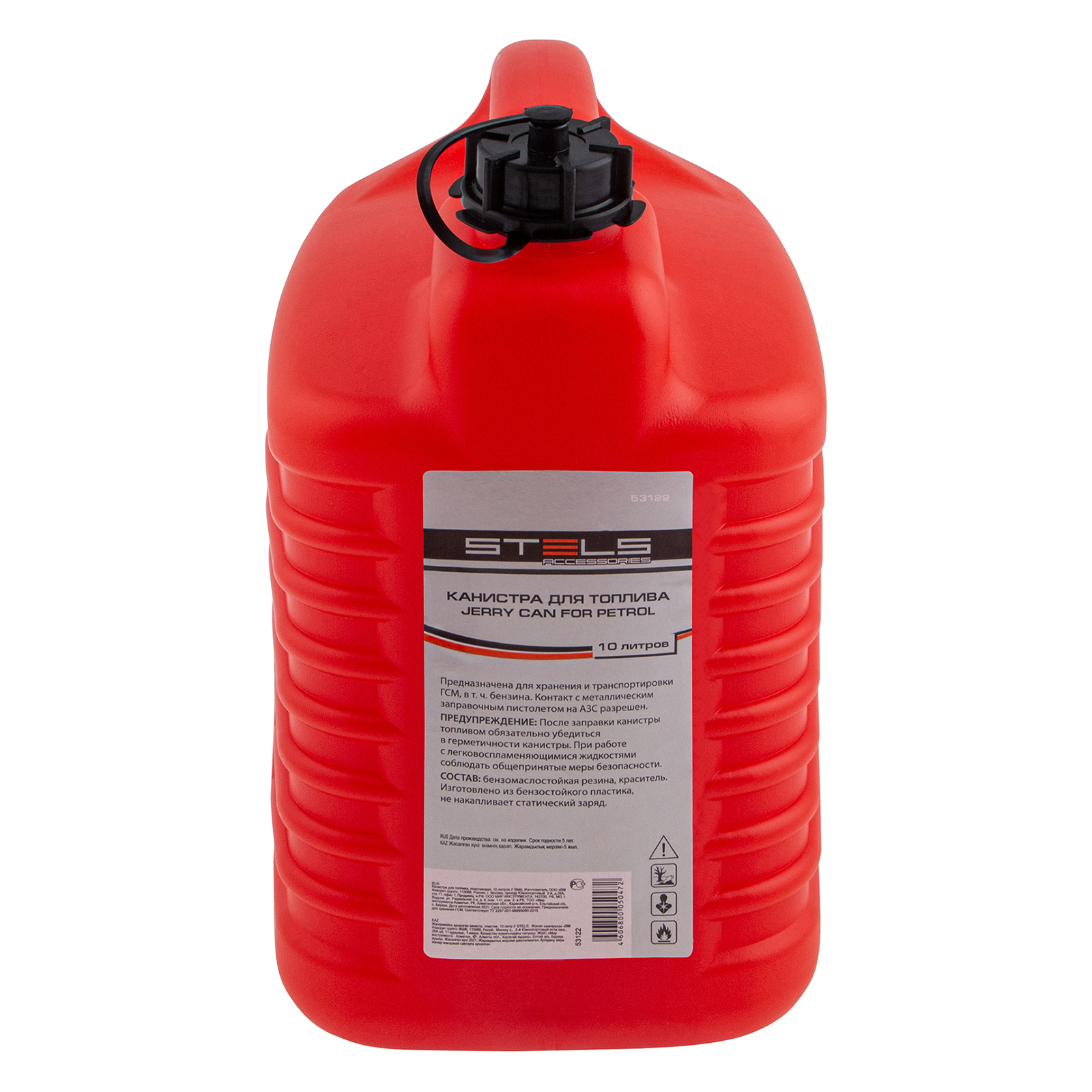 Пластиковая канистра для топлива Stels 53122 объемом 10 литров предназначена для хранения и перевозки бензина и других горюче-смазочных материалов. Канистра пригодится автолюбителям и владельцам газонокосилок, цепных пил и другой техники, работающей на бензине.
