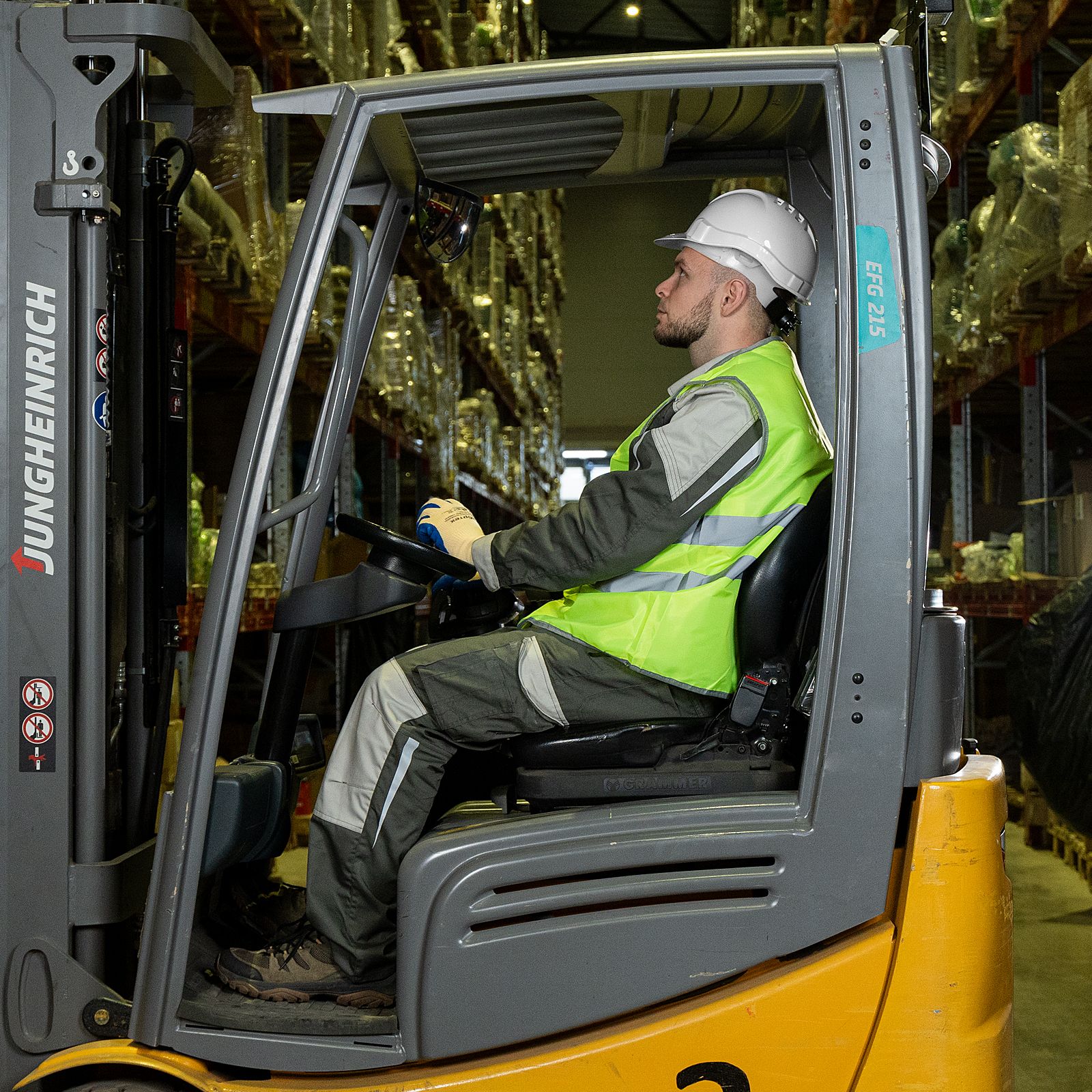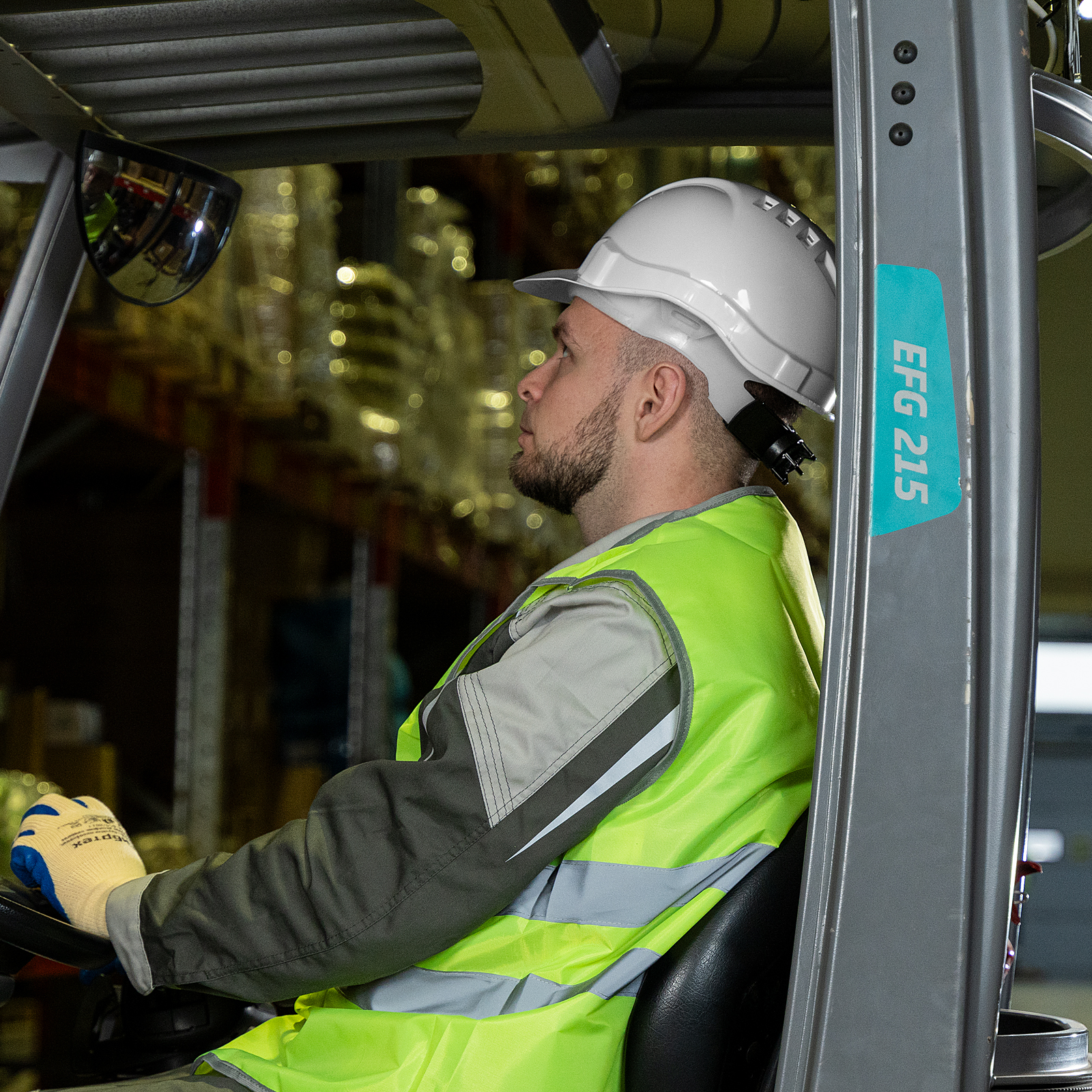 - За счет 6 точек крепления оголовья и ремня каска надежно фиксируется и не слетает с головы.