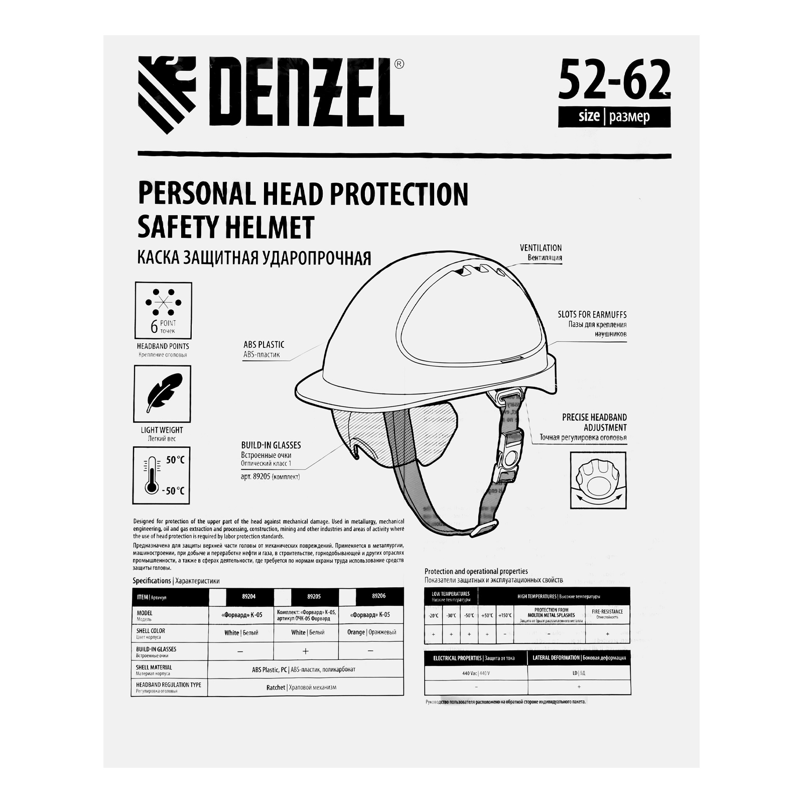 - Возможность использования в любое время года — каска выдерживает температуру от -50 до +50 °C.