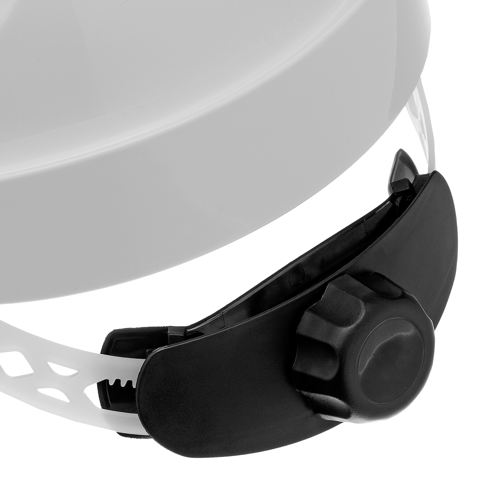 - Удобная посадка — наголовное крепление с храповиком позволяет плавно подгонять и точно регулировать размер оголовья от 52 до 62 см, каска комфортно прилегает к затылочной части головы за счет мягкой эластичной вставки.