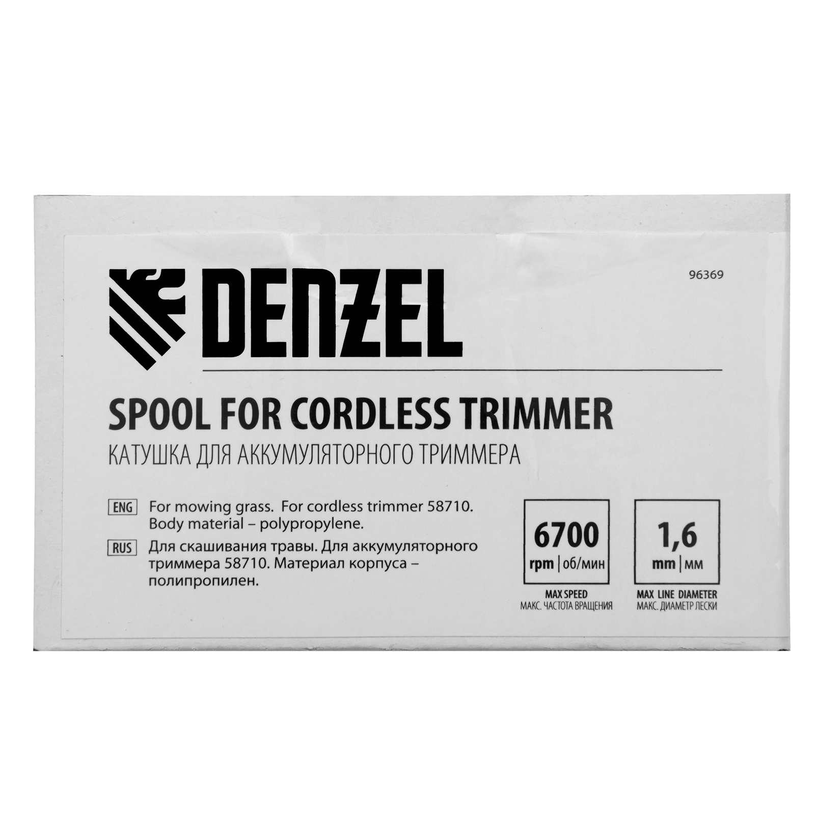 Катушка Denzel 96369 предназначена для аккумуляторного триммера Denzel RT300-36 58710. Заправляется леской толщиной до 1,6 мм, обеспечивает ширину скашивания 30 см, используется для срезания молодой травы и обработки границ газона.