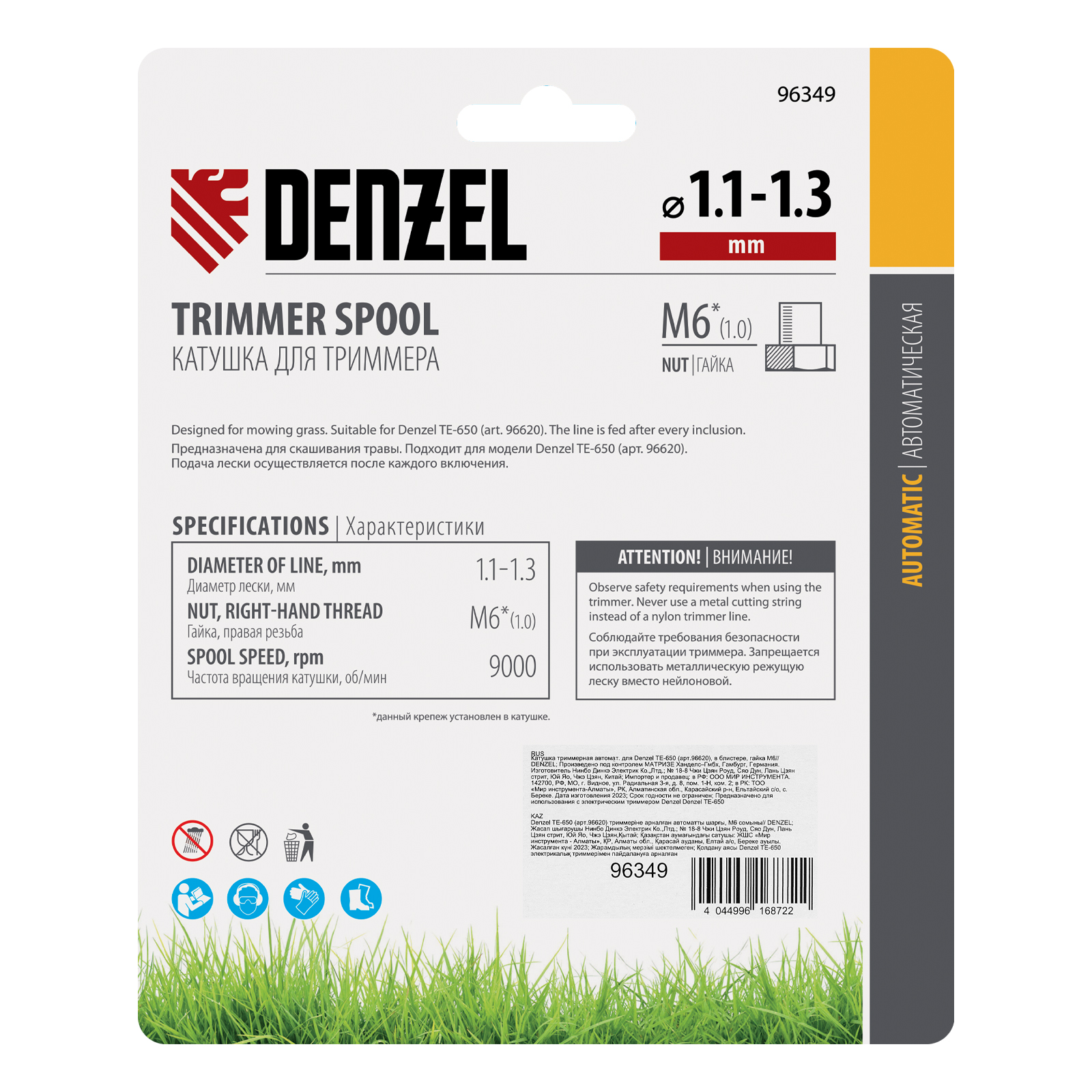 Автоматическая триммерная катушка Denzel 96349 предназначена для электрической косы Denzel ТЕ-650 96620 и других моделей с посадочным размером М6. Комплектуется леской толщиной 1,3 мм, поэтому подходит для обновления газона и срезания молодой травы на участке. В дальнейшем катушку можно заправлять не только круглой, но и треугольной, четырехлепестковой леской, а также кордом с сечением других типов.