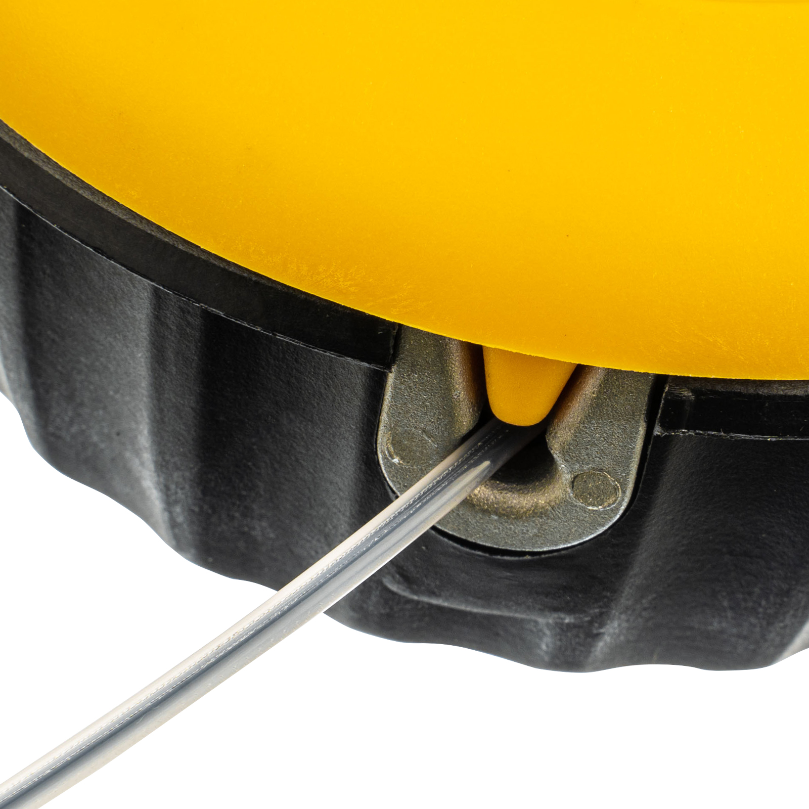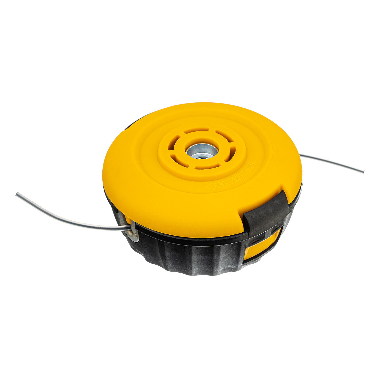- Полуавтоматическая подача — леска обновляется при легком ударе кнопкой на катушке о землю, поэтому отключать триммер не придется.