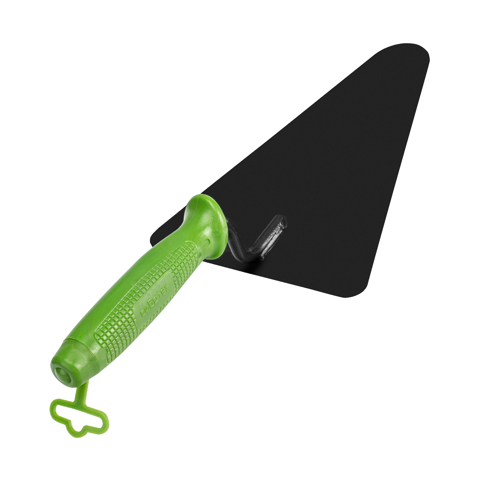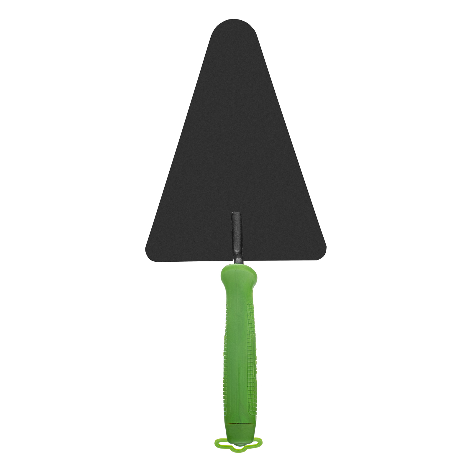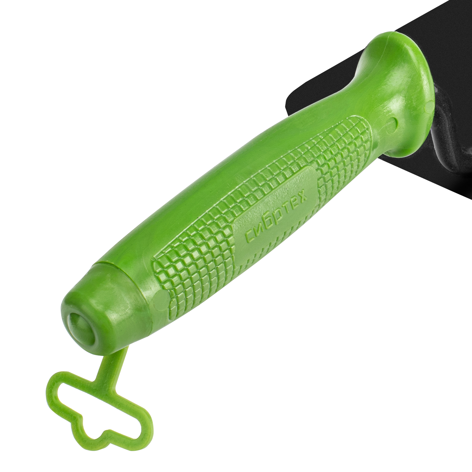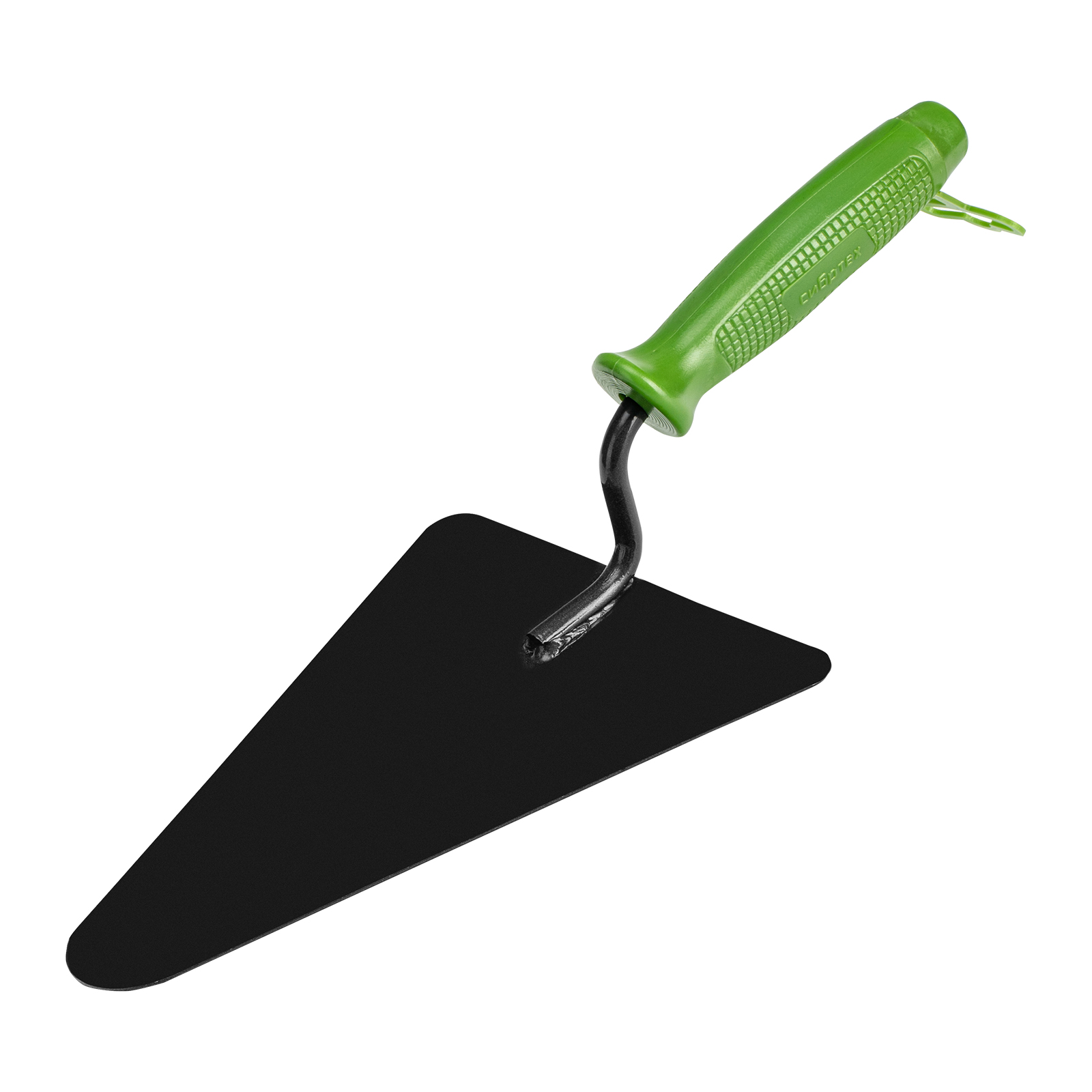 Стальная кельма бетонщика Сибртех 86213 с пластиковой ручкой используется для отмеривания материалов, перемешивания и нанесения строительных растворов, заполнения швов и удаления излишков во время кладки кирпича, строительных блоков и т. д. Треугольное полотно с прямыми гранями и закругленными краями удобно для подрезания и выравнивания раствора, в том числе и в труднодоступных местах.