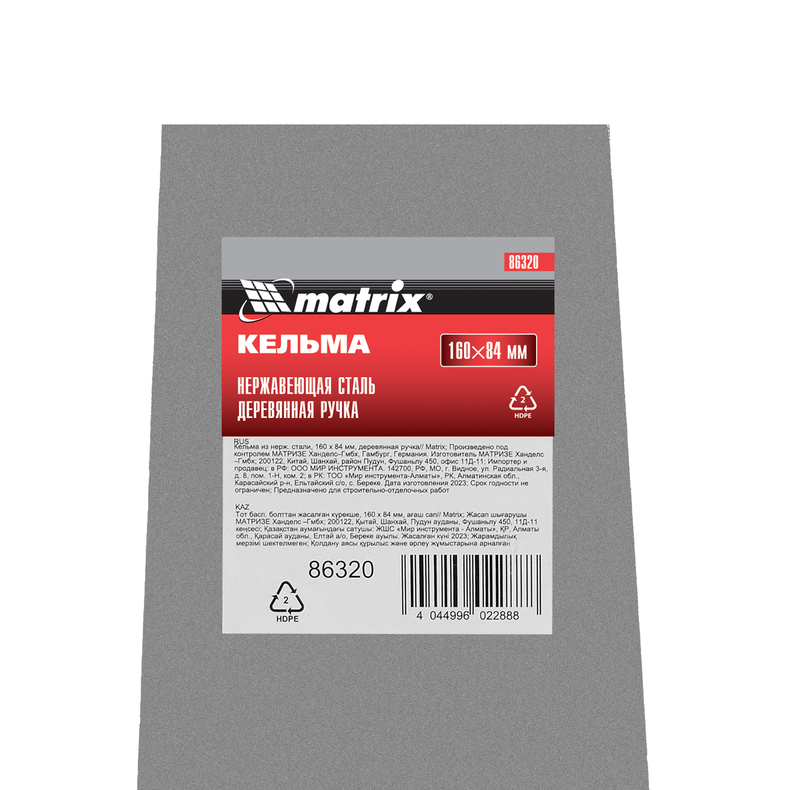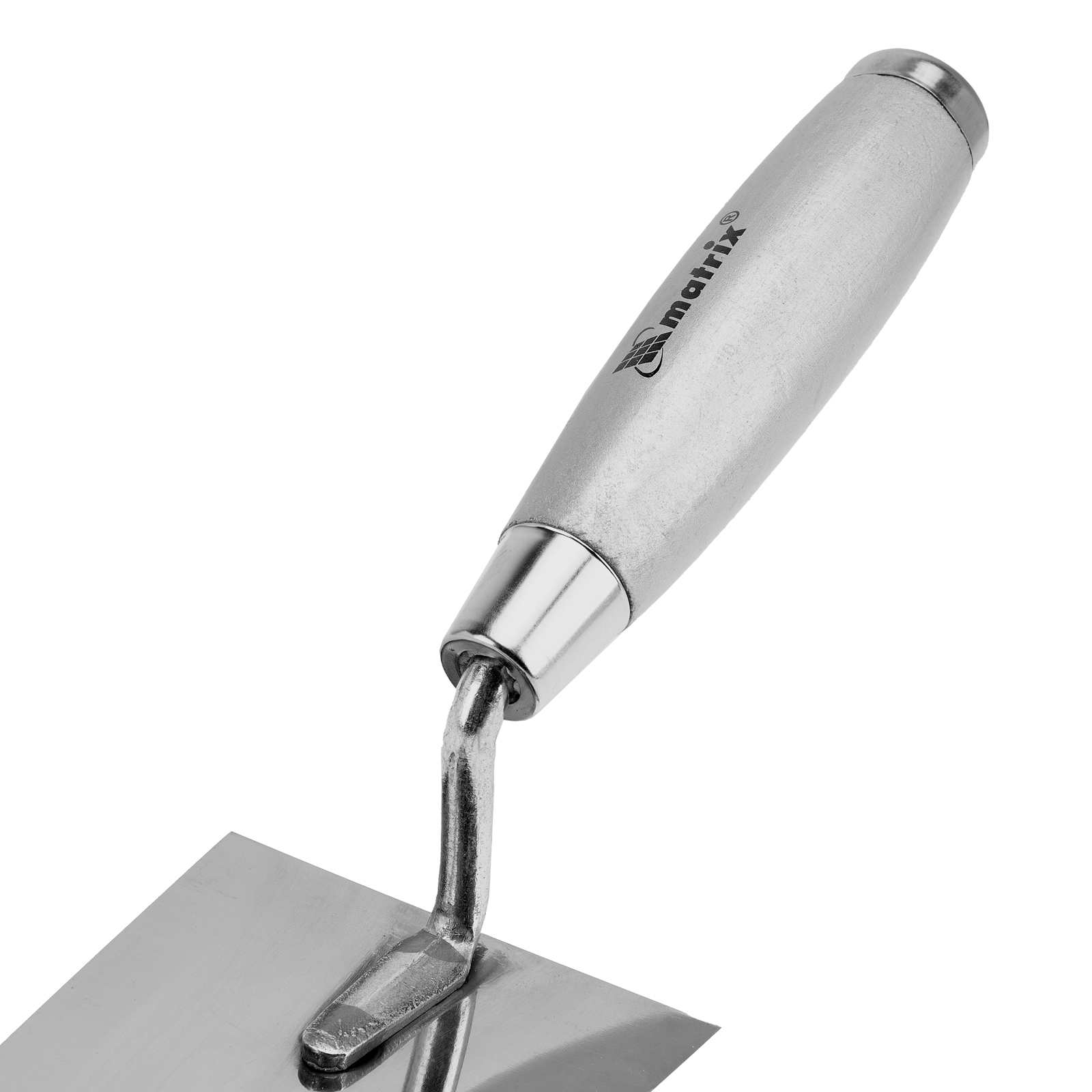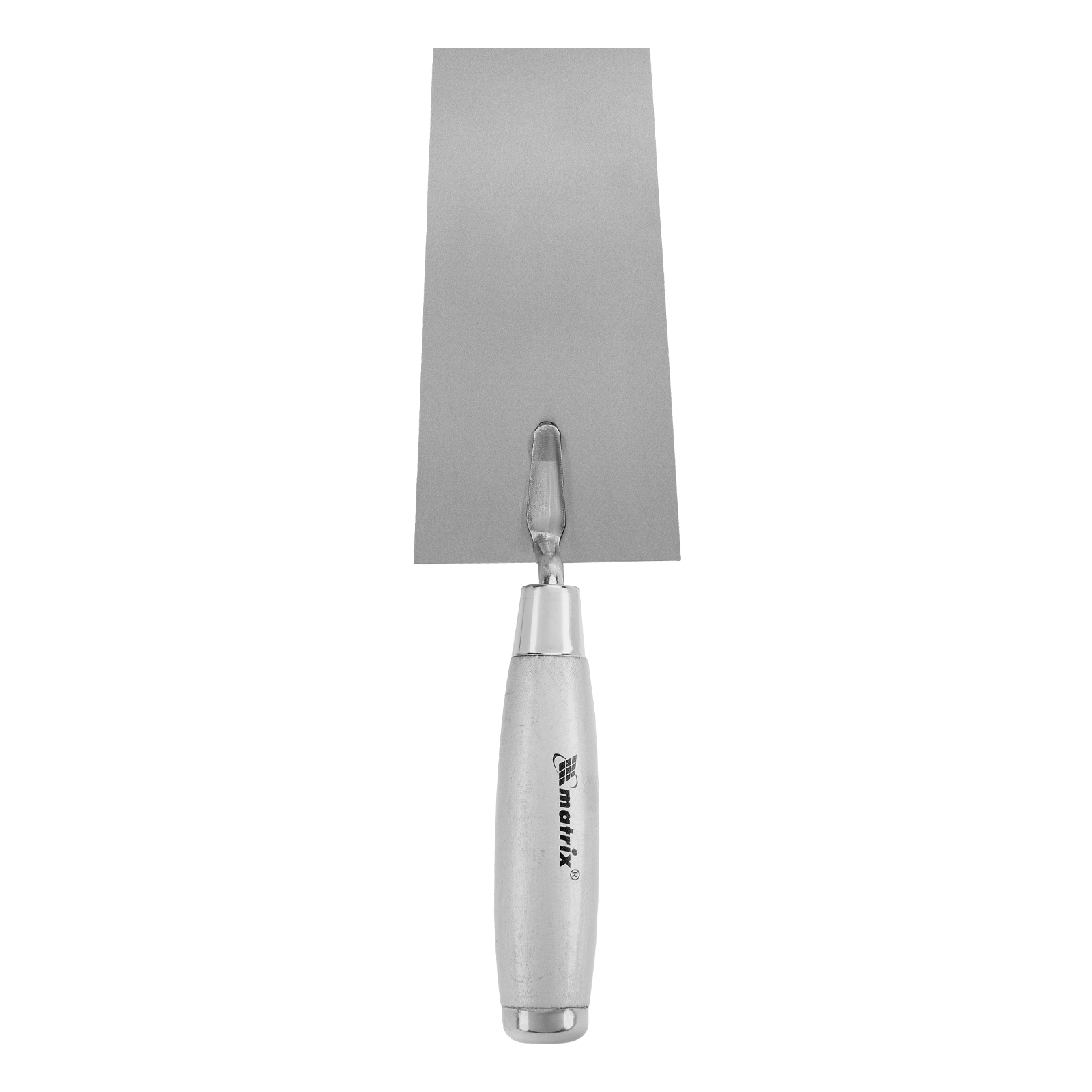 Кельма Matrix 86320 с трапециевидным полотном 160 х 84 мм из нержавеющей стали, с деревянной ручкой, применяется для проведения отделочных работ с использованием строительных гипсовых или цементных растворов. Ей удобно отмеривать и укладывать штукатурные смеси. Инструмент пригодится как начинающему мастеру, так и профессионалу.