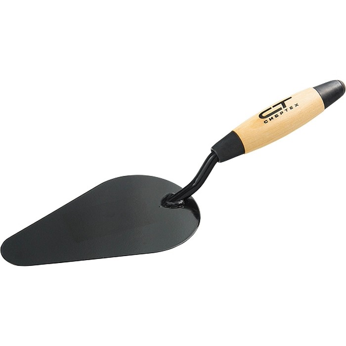 Стальная кельма печника Сибртех 86248 с деревянной усиленной ручкой — незаменимый инструмент для накидывания и разравнивания строительных смесей. Используется для выполнения отделочных операций, пригодится начинающему мастеру и профессионалу.