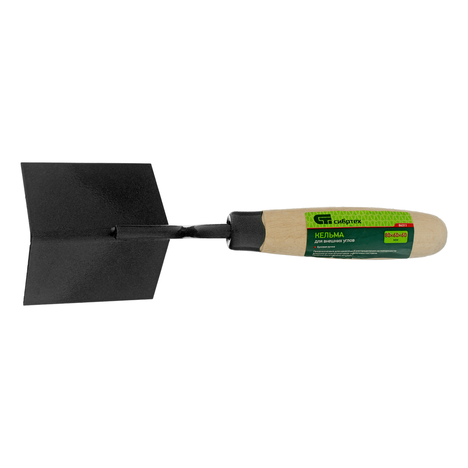 Стальная угловая кельма Сибртех 86311 размером 80 х 60 х 60 см, с буковой ручкой, используется для формирования внешних углов. Позволяет аккуратно наносить и равномерно распределять раствор, благодаря чему угол получается ровным и гладким. Пригодится для проведения строительно-отделочных работ.